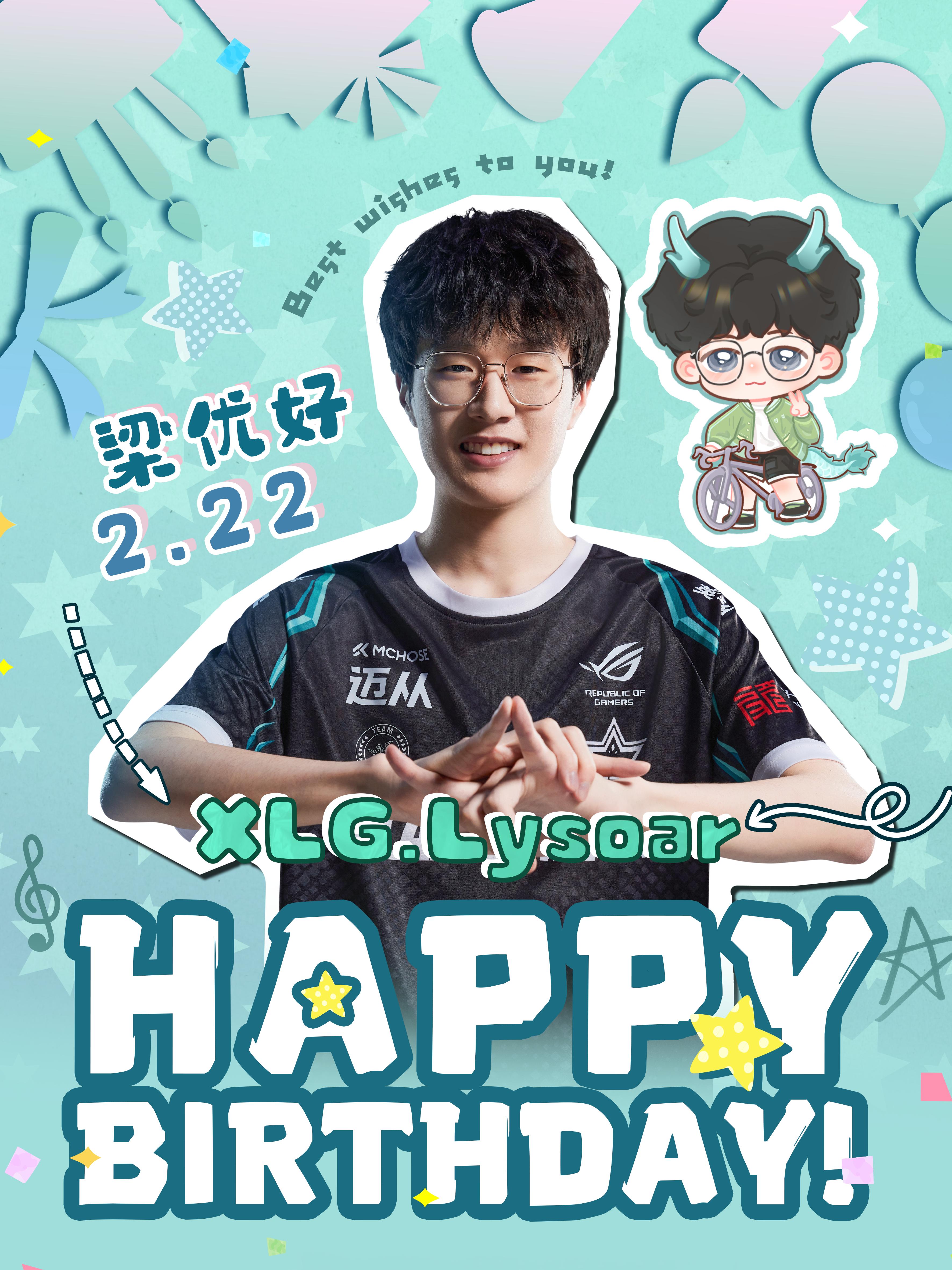 "今天是我们的选手Lysoar的生日,让我们祝梁优好生日快乐!
