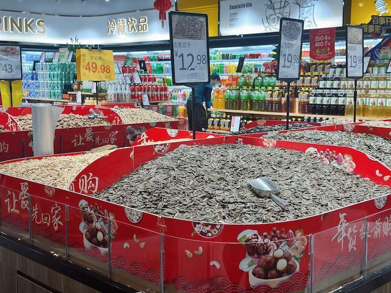 在深圳市中心的大润发商场内,刚上完最后一天班的邓晓桃站在炒货店柜台前,犹豫了一下才伸手去拿袋子。“今年的开心果比较贵,要40多块钱一斤。”她向记者抱怨道,但手里还是挑了些夏威夷果和碧根果,“因为过年了嘛,很多人会过来串门,每样都得买几斤。”