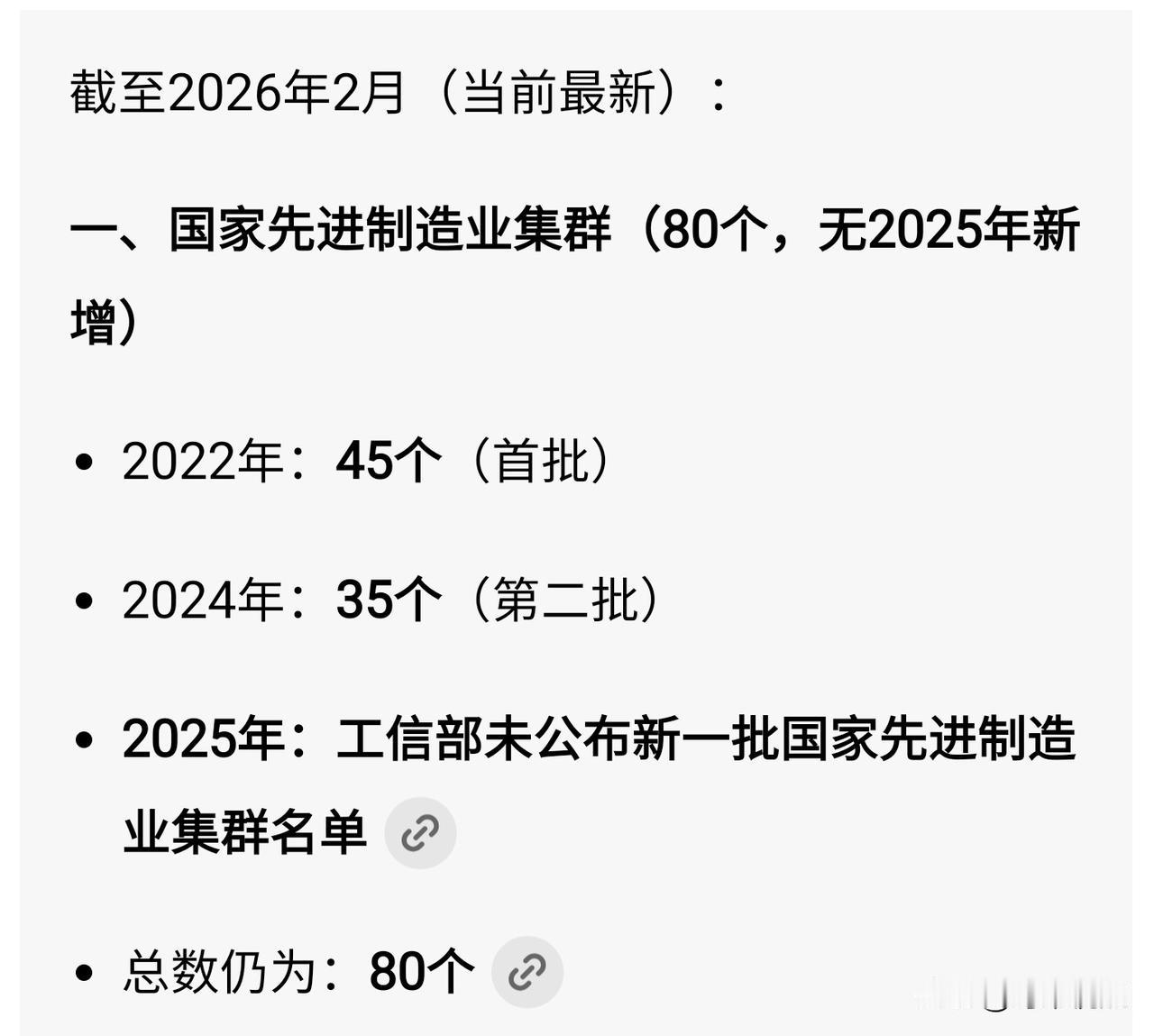 截止2026年2月,工信部发布的国家先进制造业集群分二批共计80个,其中,四川省
