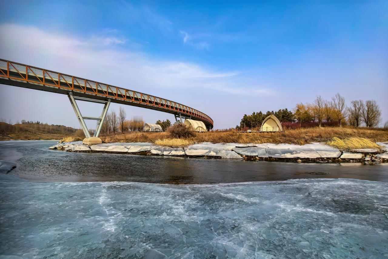 《伊通河·春步款款》 年味未淡,春风转柔。再临伊通河畔,不过三日光景,春的脚步早已不是悄然试探,而是以款款而坚定的步伐踏来——冰消了许多,水宽了许多,连风里的甜意,都比初见时更浓了。 坚冰消融大半,河面愈见开阔。曾经横亘水面的冰盖,如今化作片片残玉,或静卧滩涂,或随波轻漾,与清冽的河水交织出半冰半水的独特景致。阳光洒落,在开阔的水面上铺成一片细碎跃动的金鳞,而在残留的薄冰上,则折射出冷冽又脆弱的虹彩。侧耳细听,那不再是早先偶尔的孤零零的脆响,而是由远及近的合奏:远处冰层塌陷的闷响如大地深沉的叹息,近处流水绕过石砾的叮咚似欢快的铃音,夹杂着风穿过疏枝的簌簌,共同织就了一曲春的序章。风软了,云轻了,连河畔的空气都浸着水汽与阳光,裹挟着泥土解冻的腥香、草根萌动的青涩,酿成一抹温润微醺的甜。 那座熟悉的景观桥,依然以舒展的弧度横跨河面。再次立于桥下同一个位置,视野已豁然开朗。桥下的流水不再是初融时的怯怯试探,而是清亮奔涌,载着满满的暖阳碎金,一路欢歌向前。沿着河岸缓缓走,这风不疾不徐,拂在脸上,已没了冬日的凌厉,倒像温热的手掌轻轻摩挲,所过之处,连衣角都染上了阳光与河水清爽的气息,让人不由地放慢脚步——只想让这风多吹一会儿,把心里角角落落的冬寒都涤荡干净,吹得暖洋洋、软绵绵。 岸边的枯草在风里轻摇,仔细看去,那摇动里已带了韧劲儿。柳条上的芽苞,比前日鼓胀了许多,一粒粒紧贴着褐枝,仿佛下一秒就要绽出鹅黄的新芽。远处林带的鹅黄愈发浓郁,像被时光这支饱蘸水彩的笔,从容地又渲染了一层。低头细看,枯草丛的根部已不是隐隐的青意,而是钻出了一星半点、针尖似的茸茸新绿,那是泥土解冻后,大地呼出的第一口鲜活气息。 那顶熟悉的白色贝壳帐篷,静立在枯黄的草甸间,帆布在晴空下泛着柔和的光;远处蓝绿色的几何塔尖,因空气澄澈愈发鲜亮,在汩汩春水的映衬下,与苏醒的自然共绘一幅鲜活的暖意画卷。天地间再无冰封的沉寂,只剩流水淙淙,风吟细细,诉说着冬去春来的笃定与欣然。 立在景观桥下,看到.又一块残冰从岸缘剥离,“咔嗒”一声脆响坠入春水,几乎来不及挣扎,便被欢腾的水流拥抱着、旋转着带向远方。这不再是初时冰与水庄严的交替仪式,而是万物苏醒的喧闹欢歌,是自然生机最明快、最迫不及待的奔赴。残冰渐尽,是旧岁困顿的彻底消散;春水浩荡,是新岁的希望正恣意生长。 冰消未尽,春步款款。伊通河的春,已从初萌时含蓄的诗行,化作了此刻舒展流淌、意气风发的篇章。举起相机,镜头里的春水正荡过残冰,义无反顾地流向远方。我知道,明天再来,这里的冰又会少一些,水又会宽一些,绿意又会浓一分。春就是这样,不言不语,却步步留痕,踩出的每一个脚印里,都蓄满了生长的力量。 岁岁冰融,今春尤疾。而能将这每一步向暖的笃定奔赴,都走成与春风并肩而行的日常,便是时光在丙午马年开端,赠予人间最真切、最踏实的幸福。