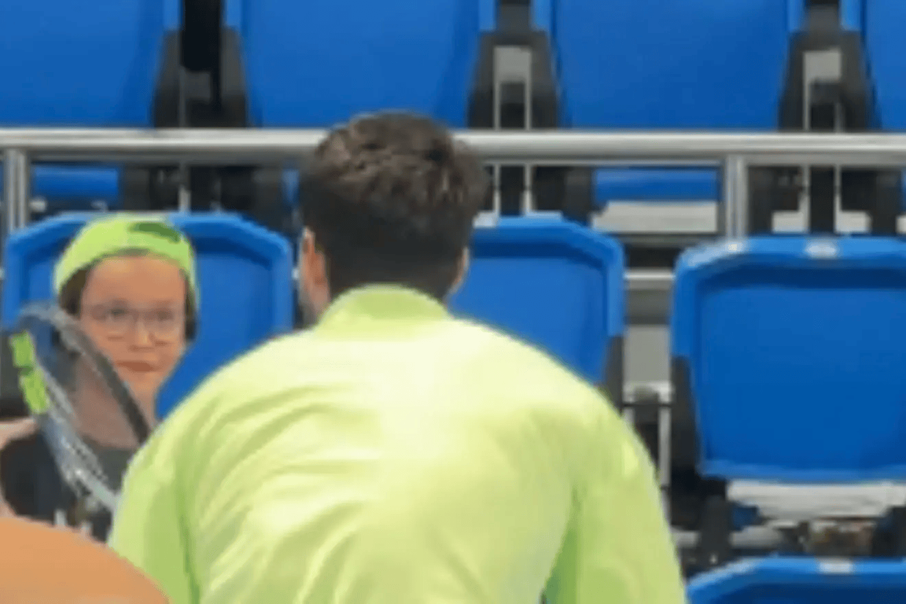 这场决赛结束后,阿尔卡拉斯先是回到替补席,与团队成员一一拥抱致意,随后迅速返回场地参加颁奖仪式。完成全部流程后,在离开球场前,他特意走向看台,找到一名戴着眼镜和帽子的男孩,将自己在决赛中使用的Babolat球拍赠予对方。