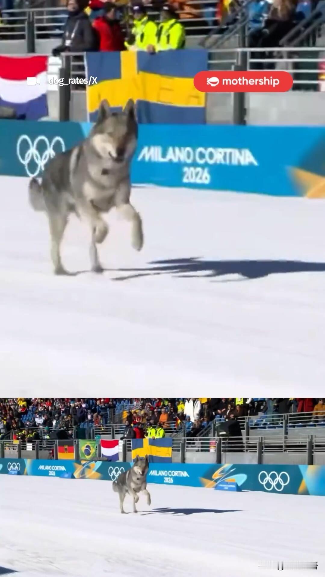 笑不活了!米兰冬奥会爆火的“编外选手”,居然是只闯赛道的狗子!当时还以为是狼呢。 这只叫“戒灵”的2岁捷克狼犬,真的太能整活了。主人全家去看冬奥比赛,把它锁在家里的犬舍,谁知道它直接越狱,溜到了附近的越野滑雪赛道差点拿到金牌…… 人家运动员正正经经比资格赛,它倒好,跟着队伍一路猛冲,还跟着冲过了终点线。 精瘦的银灰色身子,竖着尖耳朵,观众都以为是狼闯进来了,结果是只叛逆小狗,甚至还登上了官方终点摄影图,直接火遍全网。 主人在看比赛的火车上收到朋友发的视频,人都慌麻了,一整天都提心吊胆,生怕它出事或是搅乱赛事。 还好工作人员及时抓住了它,没伤到人也没影响比赛,有惊无险。 现在这狗子妥妥成了冬奥意外顶流,好笑归好笑,还是要看好自家毛孩子,赛道这么危险,万一出事就糟了,还好这次是个软乎乎的可爱小插曲。