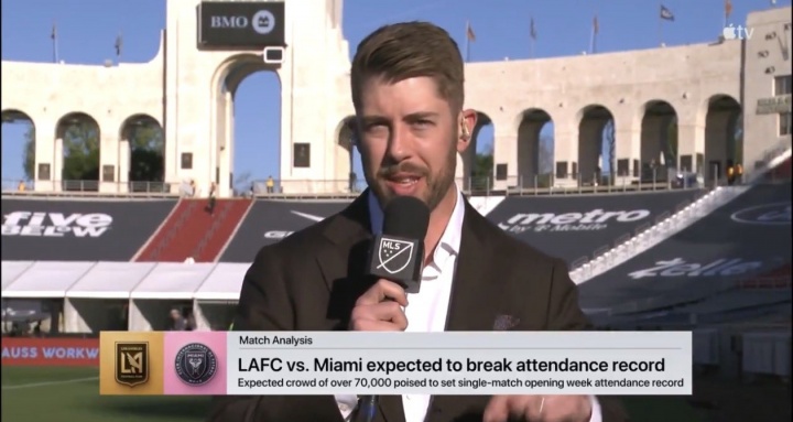 现场主持人报道,本场比赛预计超7万人现场观战,打破美职联开赛周单场上座纪录。
