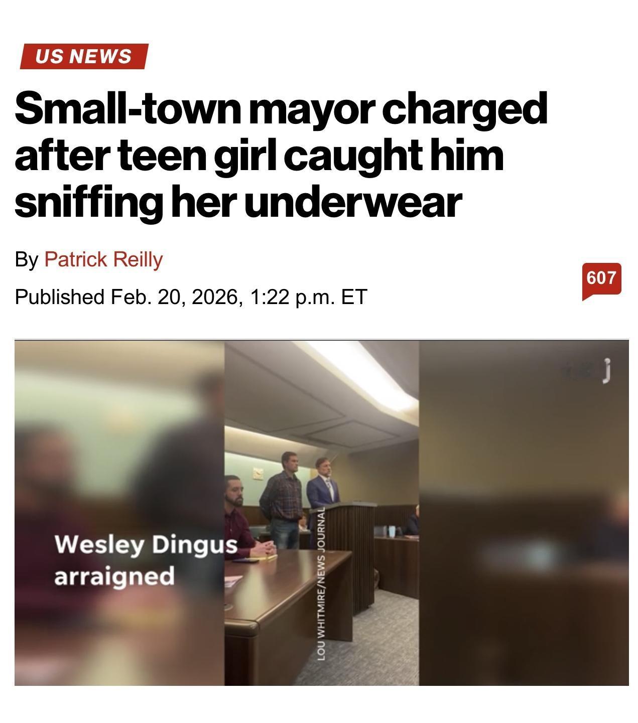 美国俄亥俄州巴特勒市共和党市长韦斯利·丁格斯Wesley Dingus被控两项偷窥罪,据称他被摄像头拍到嗅闻一名少女的内衣。(针对韦斯利·丁格斯的指控来自一名曾在他住所居住的少女,她在自己的卧室里安装了隐藏摄像头。) 他获准保释,但被勒令佩戴GPS监控器,并被禁止与原告联系。 被捕时,他已因在俄亥俄州贝尔维尔市的另一起严重袭击案获得保释。