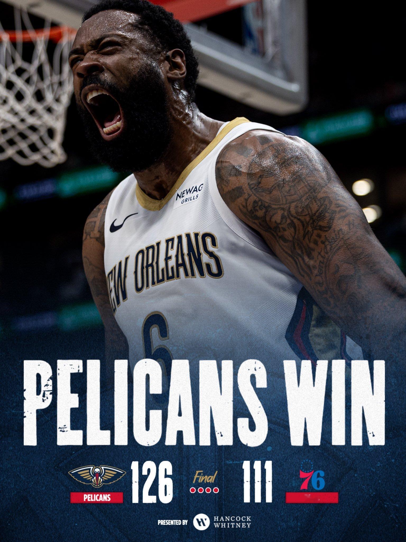 2026年还能看到小乔丹首发,他还能拿6分15篮板4盖帽帮助球队赢球鹈鹕击败76