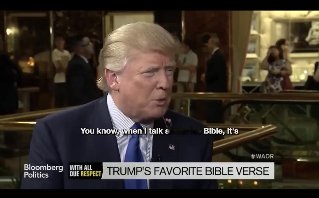 问:你最喜欢的圣经经文是什么? 特朗普:我不想谈论这个话题,因为对我来说,这是非常私人的事情。你知道,当我谈到《圣经》时,这对我来说是非常私人的事情。 问:你是旧约信徒还是新约信徒? 特朗普:呃,大概差不多吧。我觉得这简直太不可思议了……整本圣经都太不可思议了。