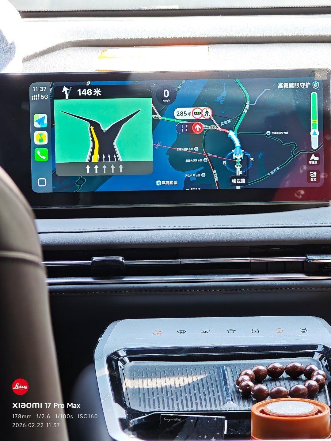 车机是手机蓝牙连接还是carplay不知道,车机看地图显示还比较丝滑流畅的。