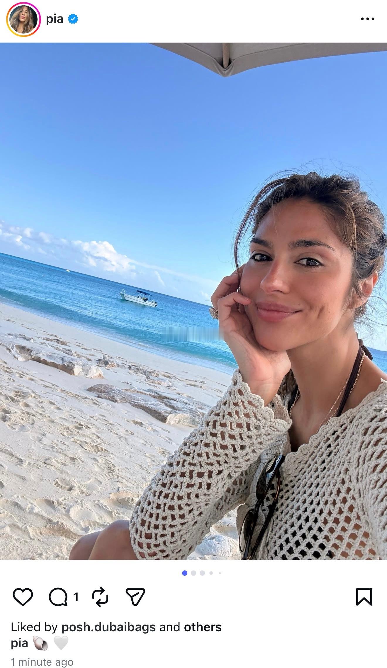 桑切斯前夫的现任太太Pia分享夫妻俩的海边度假美照⛱️👇