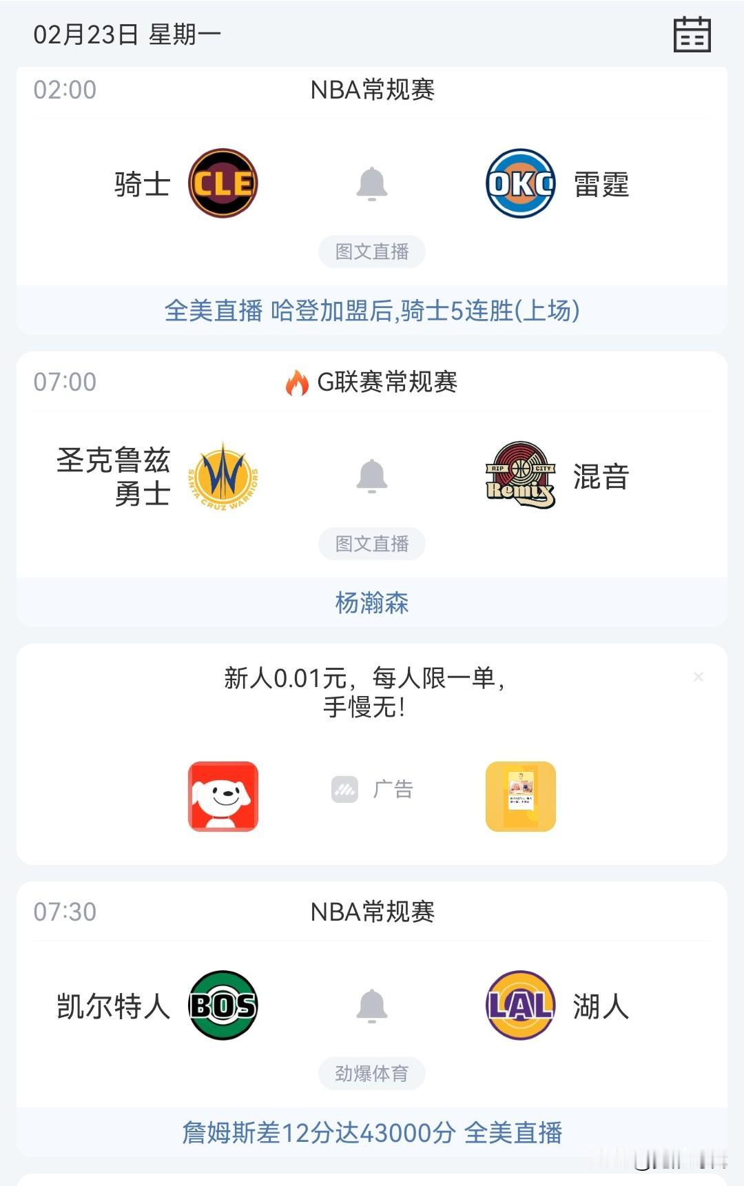明日开拓者战太阳 骑士战雷霆 湖人战绿军等焦点赛事关注
