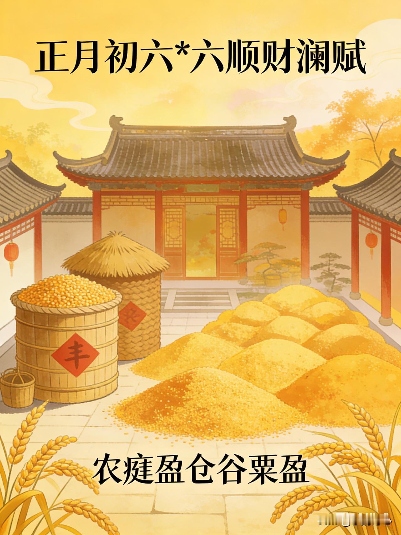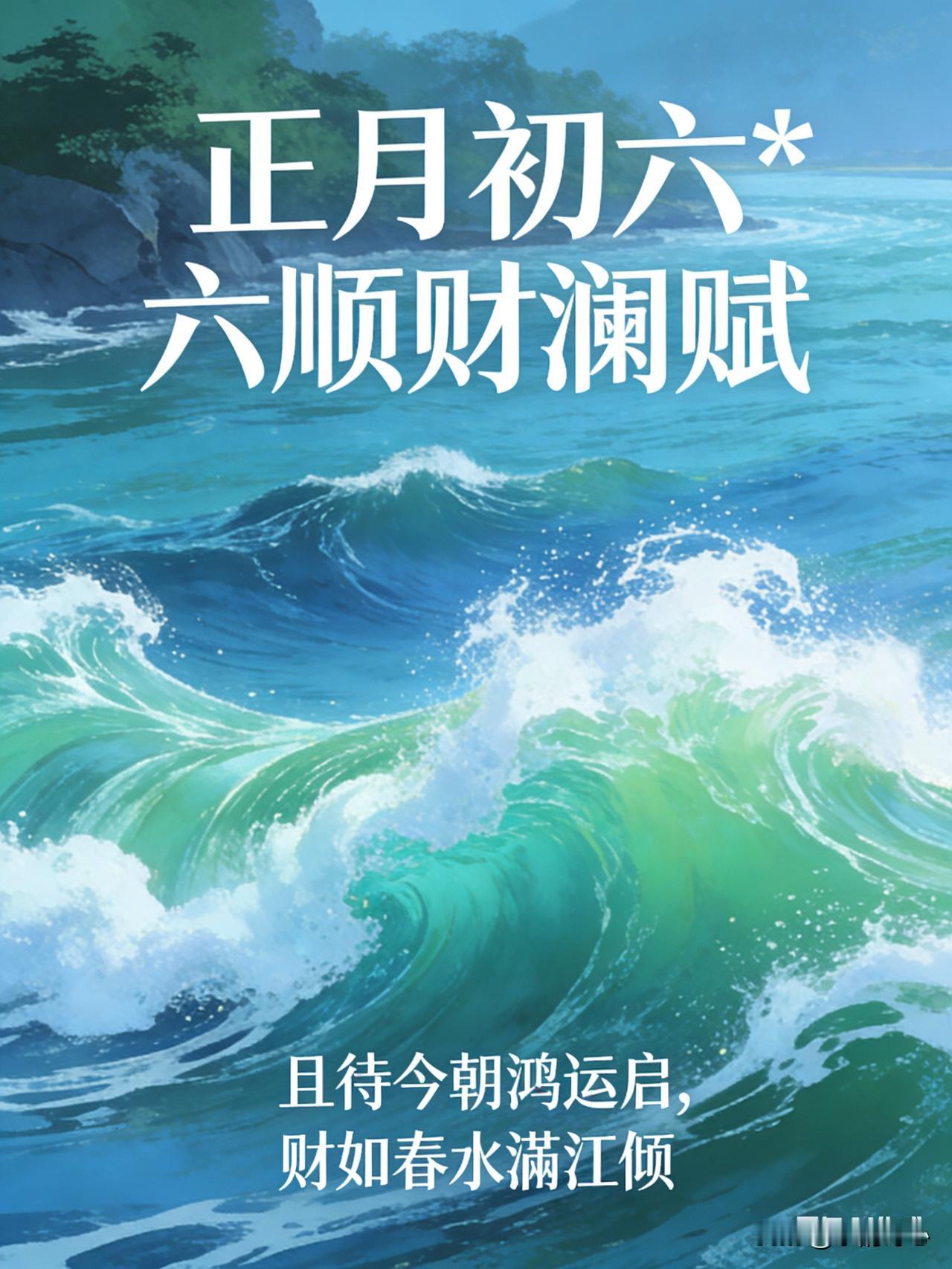 《正月初六:六顺财澜赋》乐韵诗心原创诗词: 正月初六瑞光盈, 六六呈祥福运生。 巷陌张灯添喜气, 门庭焕彩映财明。 商帆破浪财源广, 农廪盈仓谷粟盈。 且待今朝鸿运启, 财如春水满江倾。 这首诗词点明时间是正月初六,“瑞光盈”营造出吉祥的氛围,“六六呈祥福运生”直接点明六六大顺带来福运的主题。颔联描绘街巷张灯结彩的热闹场景,“喜气”与“财明”相互映衬,体现出节日的喜庆和财运的通达。颈联分别从商业和农业的角度,祝愿商人经商顺利财源广进,农民粮食满仓获得丰收,涵盖了不同行业的财富愿景。尾联表达对当下开启鸿运的期待,将财气比作春天的江水,形象地展现出财富如江水般源源不断、汹涌而来的美好寓意。