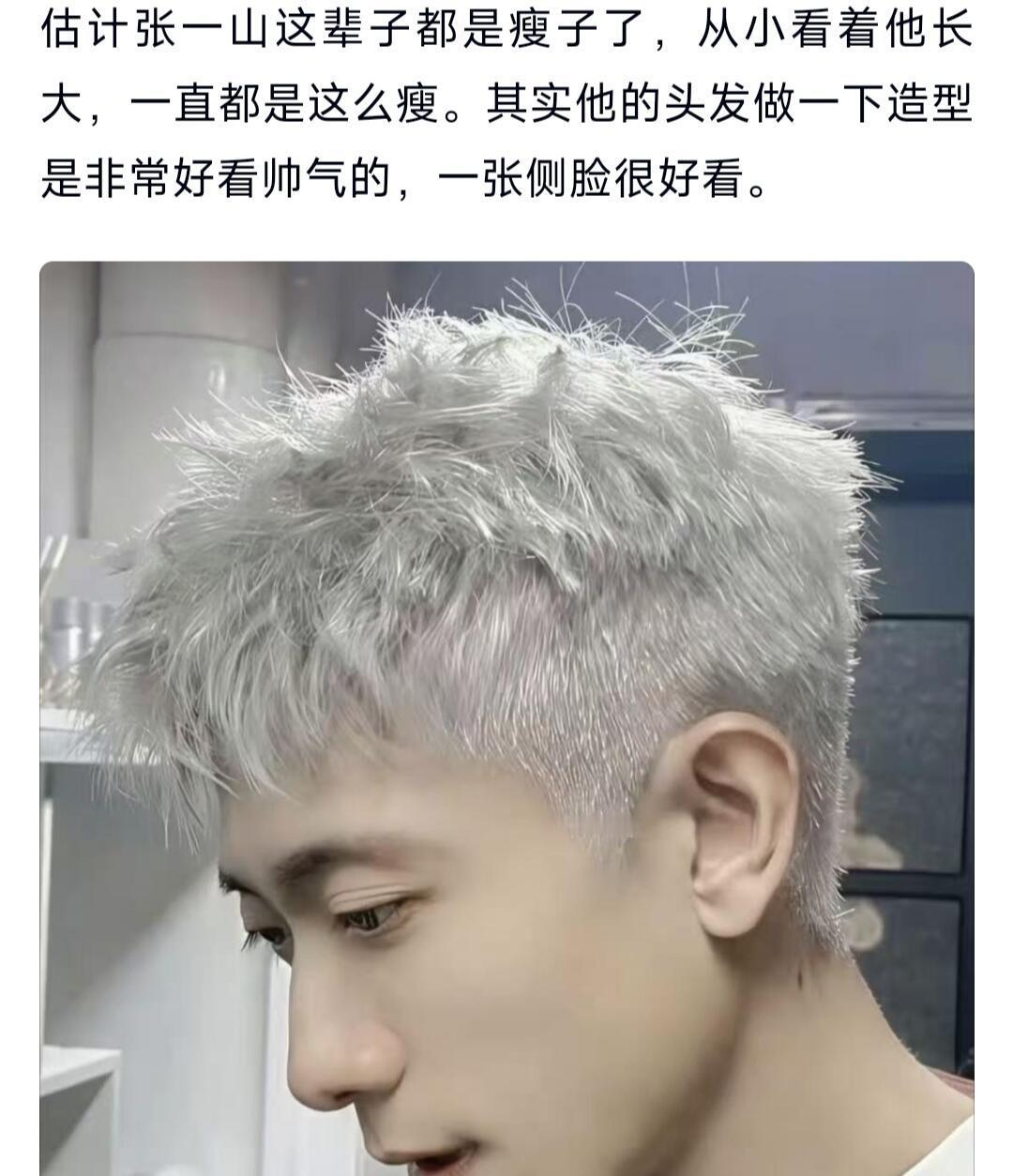 张一山最新饭局照吓到我了。34岁的人顶着一头枯草般的银发,两颊凹陷得能放进一枚硬