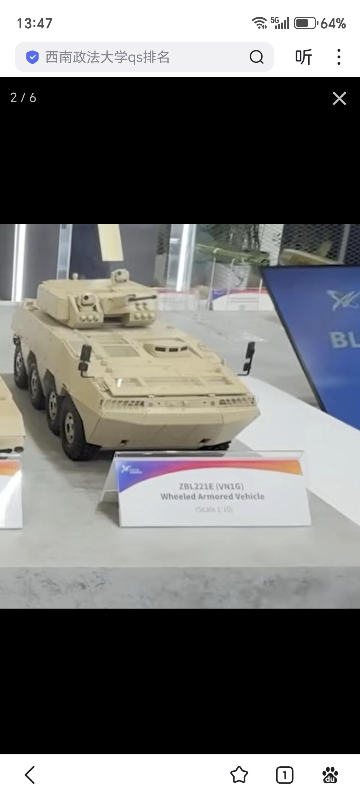 在今年沙特举行的WDS 2026世界防务展览会上,北方工业的展台上出现了基于新的VN1G 8x8底盘的轮式步兵战车,安装有UW5无人炮塔(图2)。VN1G也是一机集团继出口泰国的VN1C之后推出的新一代八轮产品,在前两届的珠海航展上首次亮相装输型(图3)及ST3A轮突型(图4)。 有趣的是跟之前北方把VT4坦克和VT5轻坦的展板打上99AE与15E两种型号展出(如图5),这次也算向外公开了自用新八轮的型号,即ZBL221(图6),而不是网传的ZBL19或ZBL191