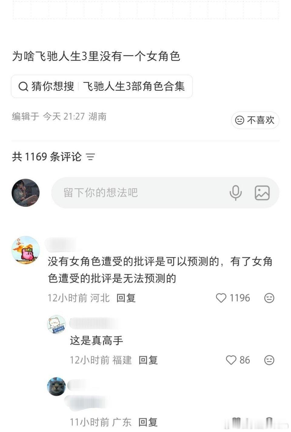 飞驰人生3这是真高手啊。一句话就解答了飞驰人生3的女角色问题。电影没有女角色,只能批评为啥没有女角色。电影有女角色,遭受的批评就无法预测了。