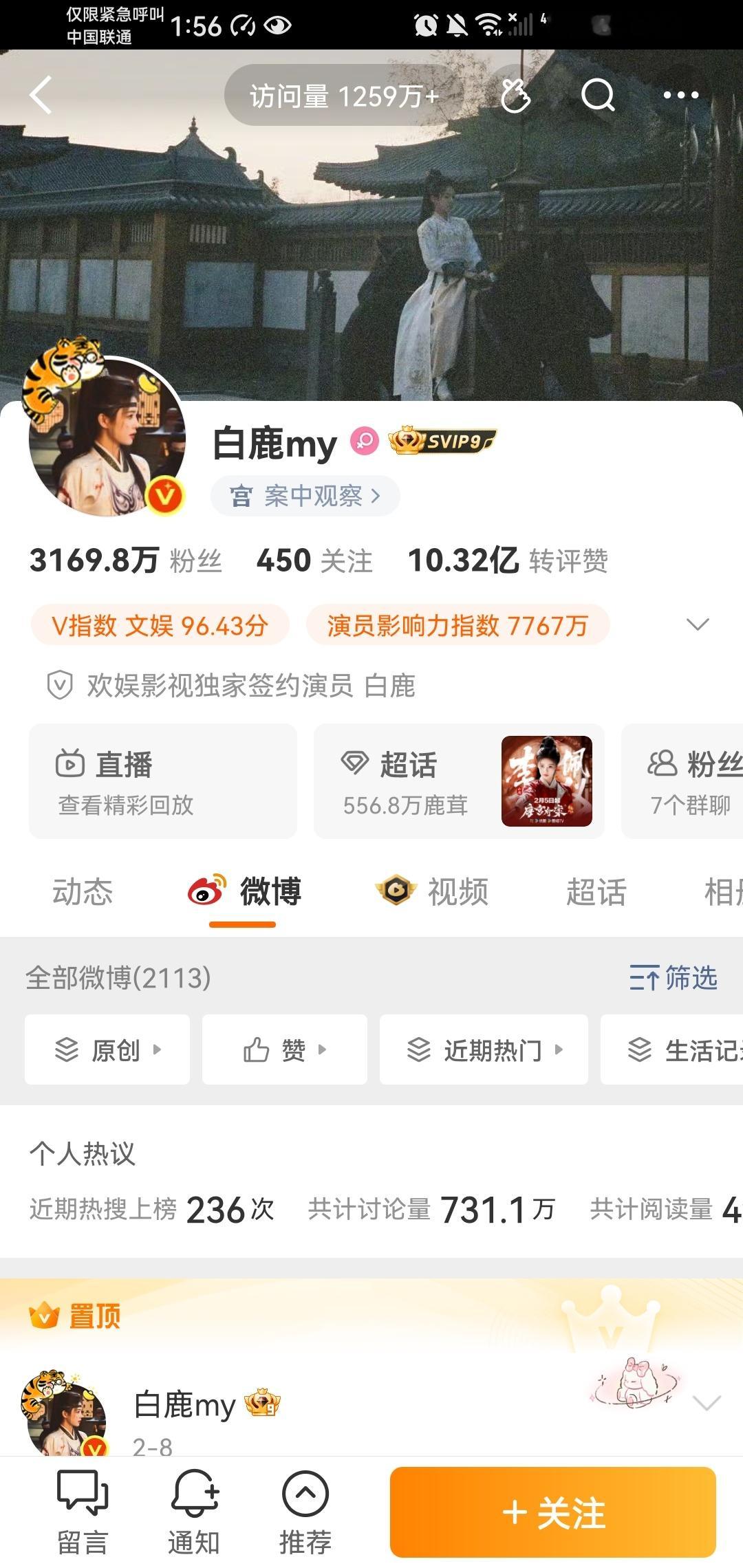 白鹿的微博访问量今天竟然还是1200多万!唐宫奇案有效播剧!今晚唐宫奇案超点!下