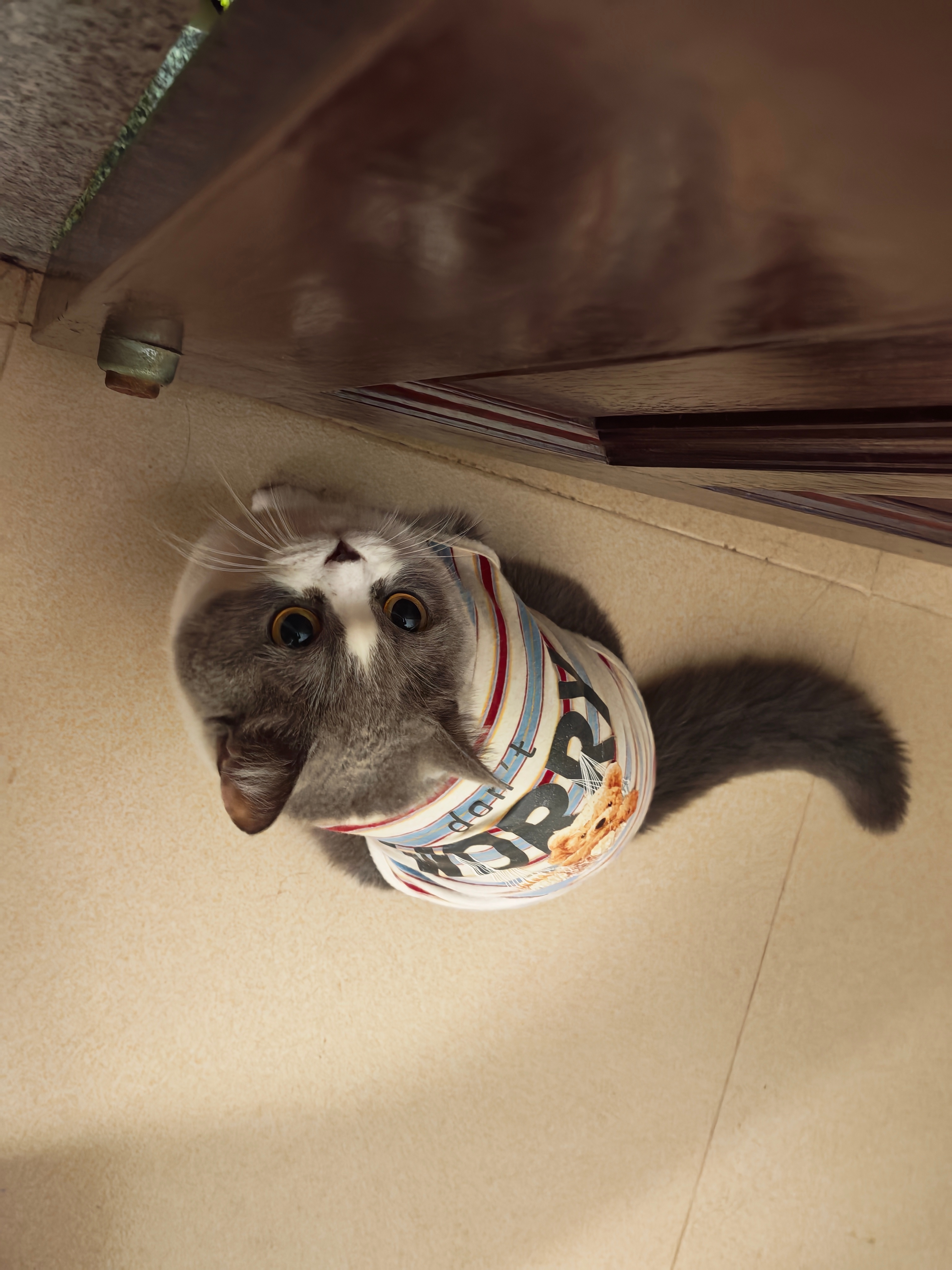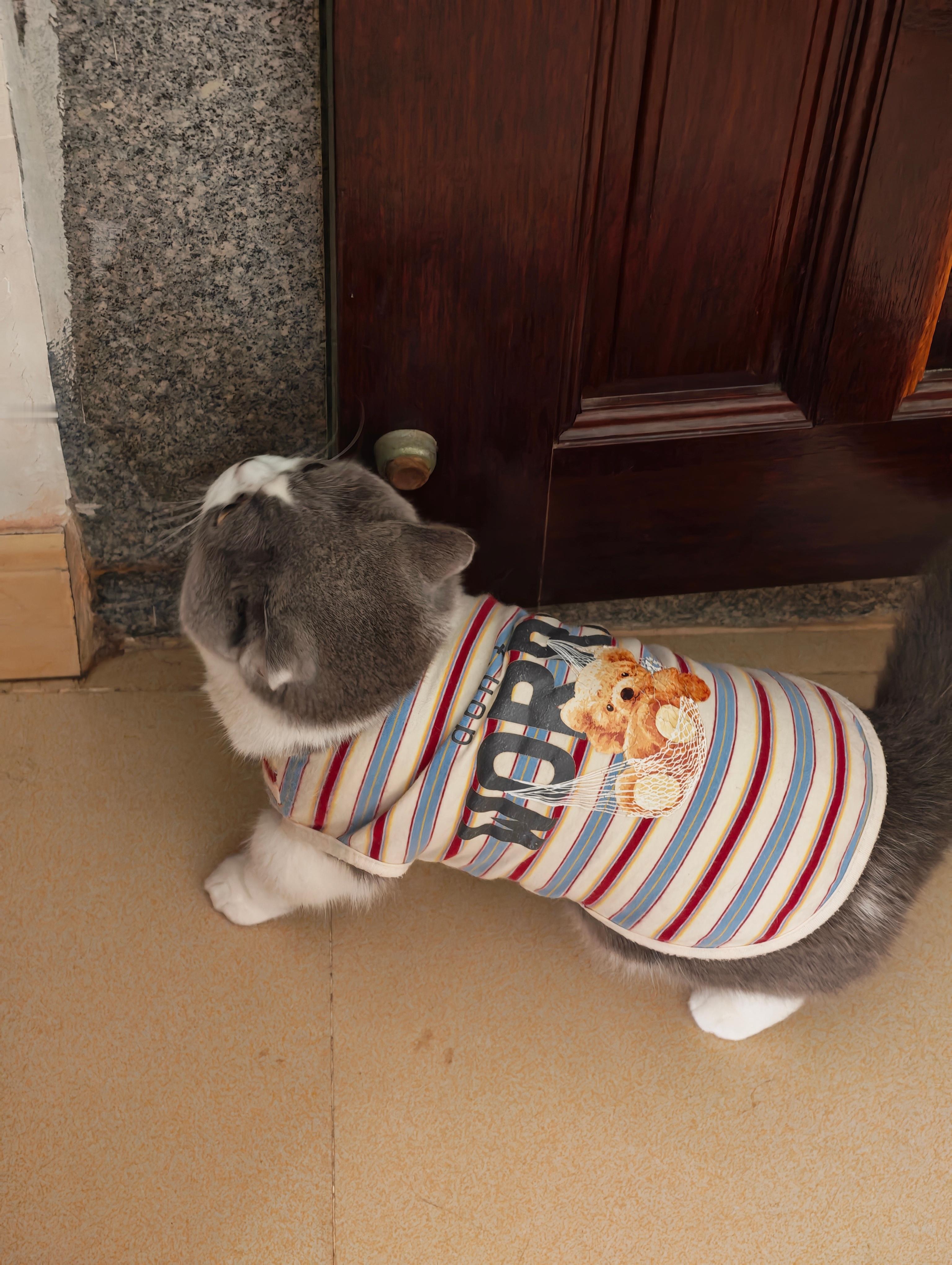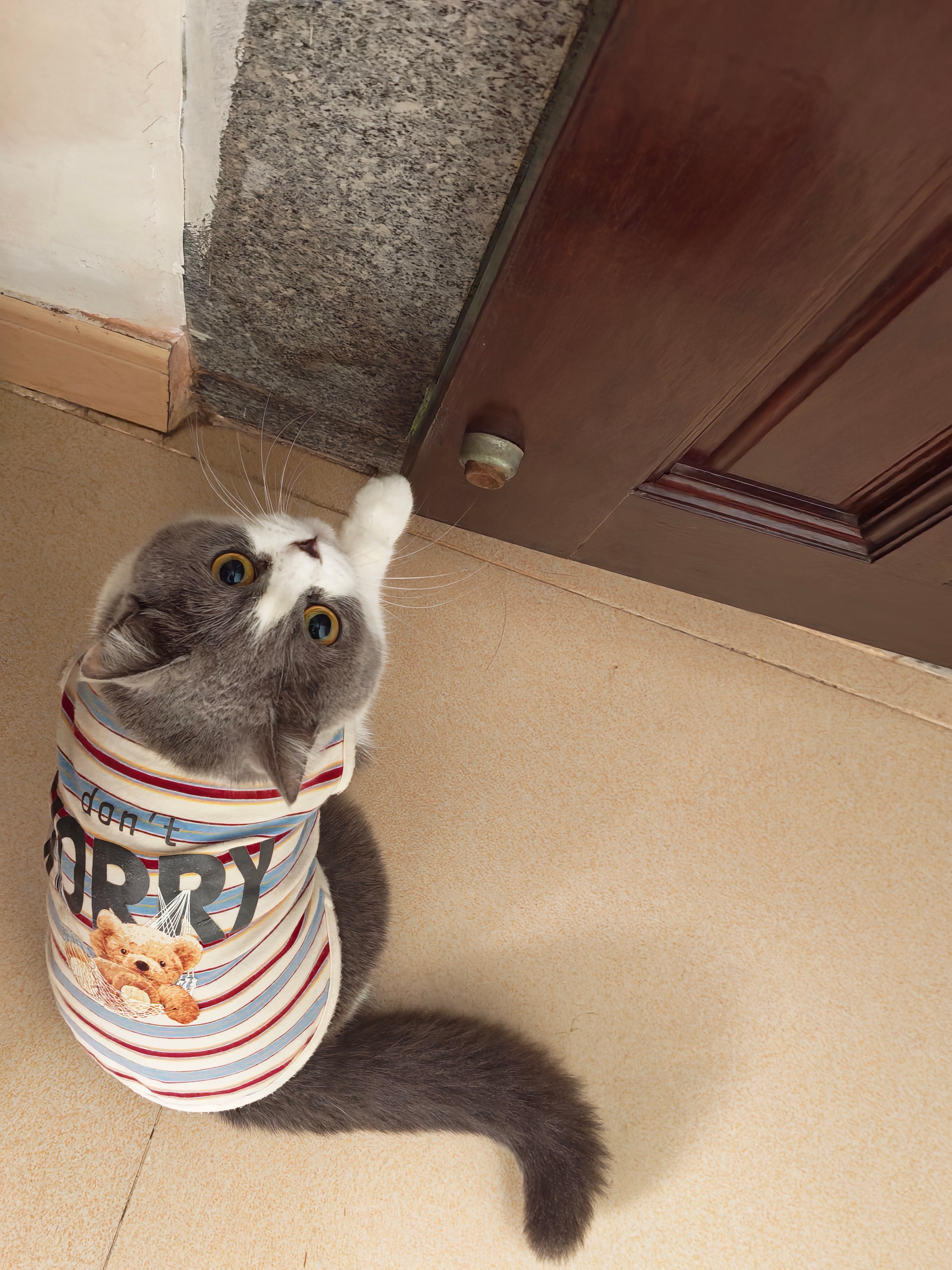 撒娇时没控制好力度的小狗尝试开门的小猫,本来就瘦瘦的,穿上衣服就显胖了,圆鼓鼓的好可爱