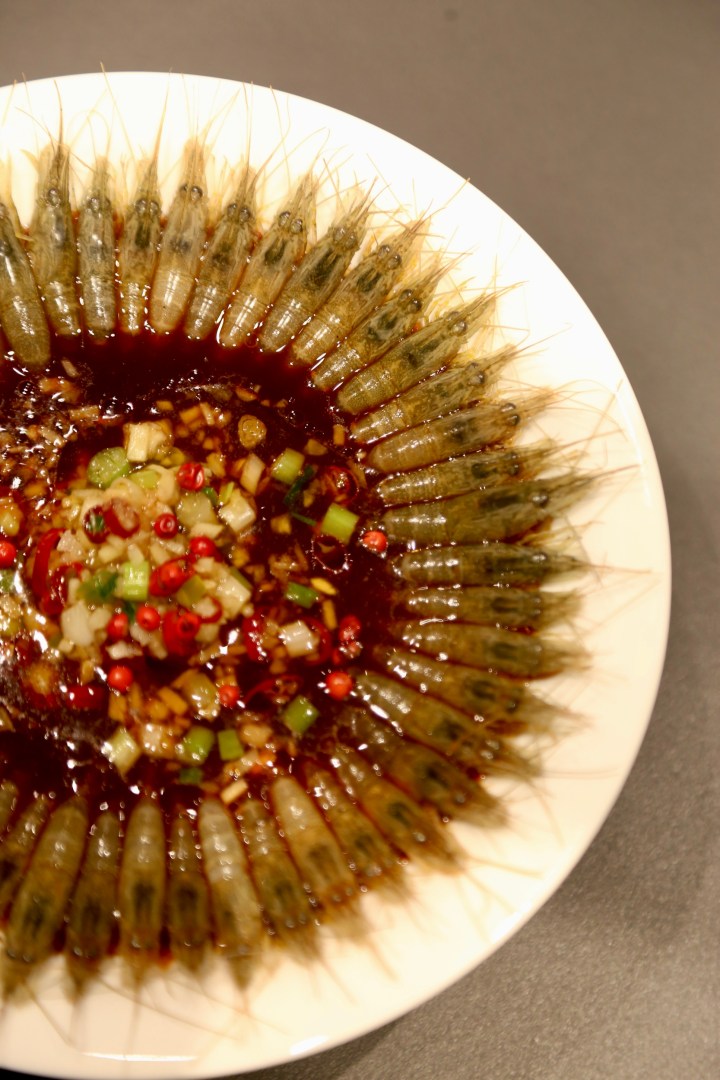 哦哟,这么有意思,我一高兴又多吃了两个醉虾。这个醉虾的酱汁配方,是杭州版醉虾与温州版江蟹生的结合,口味更清淡,但层次很丰富。