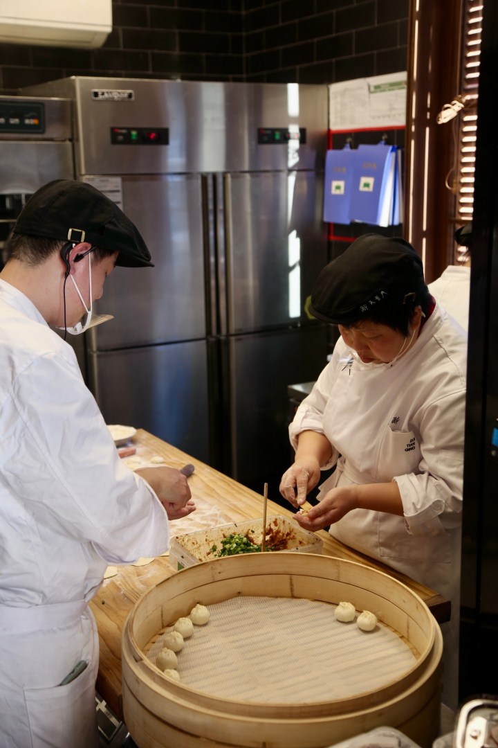 主食是杭州的传统喉口包,宋大厨特意在餐厅一楼开设了外带窗口,走过路过的游客都能看到师傅现场做包子。