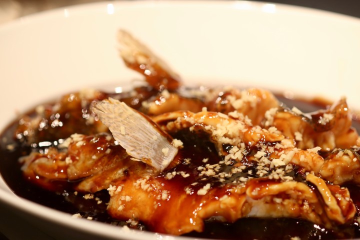 那么这条西湖边的西湖醋鱼有什么特别的呢?宋大厨说这个鱼是用黄笋壳鱼来做的,相比于黑笋壳鱼,黄笋壳鱼的鱼肉更细嫩。烹饪技法是正统学院派,上桌后,我们按照“色香味”的顺序,先看一眼醋鱼的形,尤其是欣赏傲娇展翅的鱼鳍;再闻一闻鱼香,这里说一说糖醋汁的配比与制作,宋大厨说烧菜时像糖、醋、酱(油)这样的传统调料,哪个先放、哪个后放都有讲究,放的顺序会决定味道释放出来的顺序。