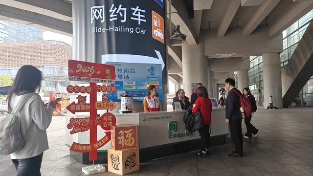 返程高峰期间,广州南站东、西广场问询中心同步发力,全方位为离穗、抵穗旅客提供便民服务,涵盖合法网约车及拼车信息咨询、精准交通指引、城际大巴票务办理、周边住宿推荐等,切实解决旅客出行中的各类难题。此外,两处问询中心的工作人员还将主动对接春运客流需求,协助东、西广场过往旅客快速换乘,用细致服务传递新春暖意。