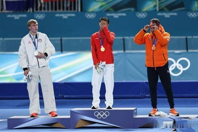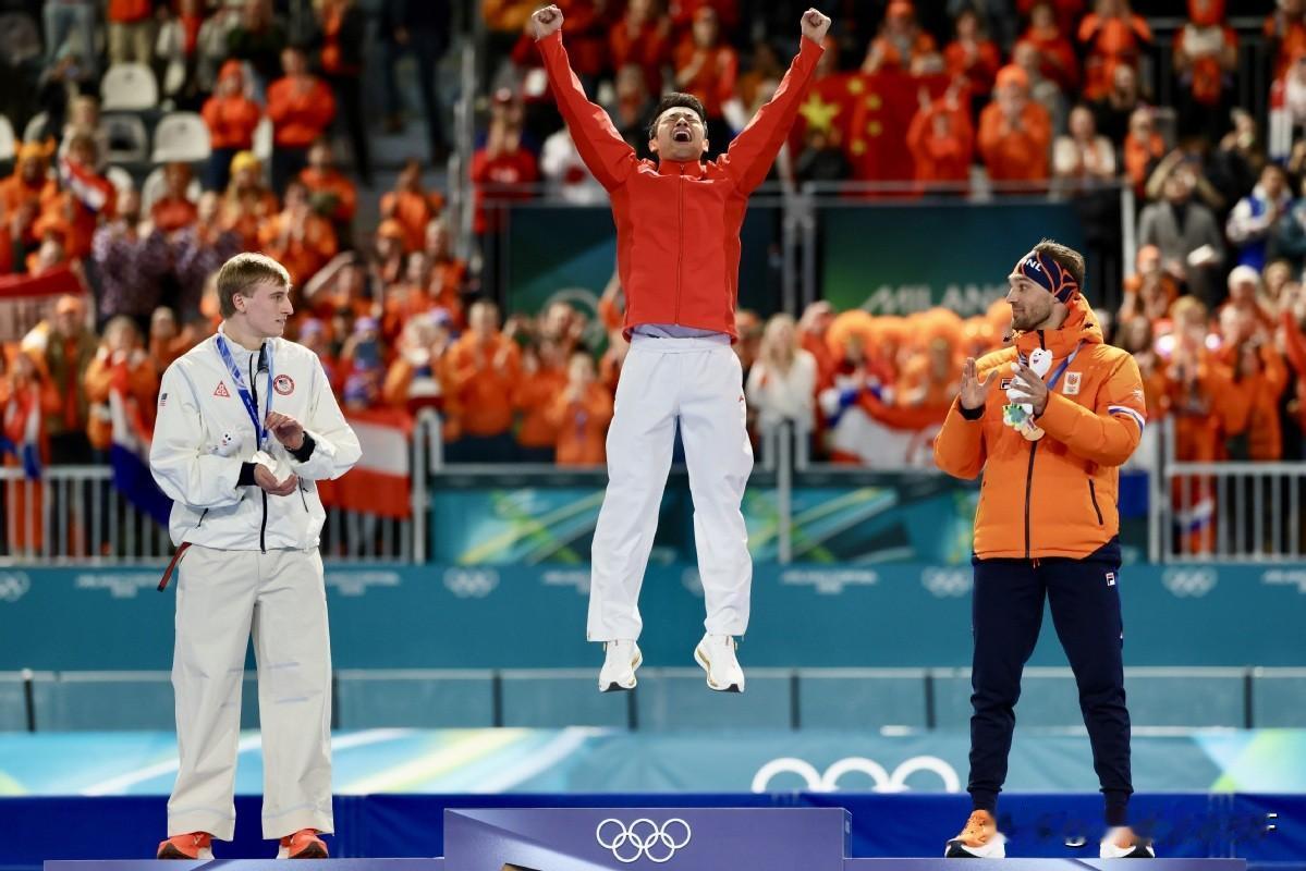 看到颁奖仪式上宁忠岩眼含热泪,真的太伟大,太了不起了! 也真的太解气了! 被欧美垄断了整整一百年的金牌,今天被咱们中国人硬生生抢回来了,这块金牌含金量实在太高了!同组就是那个不可一世的美国天才,前半程一直压着宁忠岩,所有人都觉得他赢定了。结果最后一圈,宁忠岩直接滑疯了,冰刀跟装了马达一样,玩命冲刺,硬生生完成反超,冲线那一刻,连教练都懵了,还以为秒表坏了。 宁忠岩以极致速度与沉稳心态驰骋冰场,打破奥运纪录、改写百年历史,用实力诠释中国速滑的硬气,当之无愧的冰上王者! 这不是运气,是中国人拼出来的奇迹!百年垄断,今天被他一脚踹碎!宁忠岩,中国的骄傲!