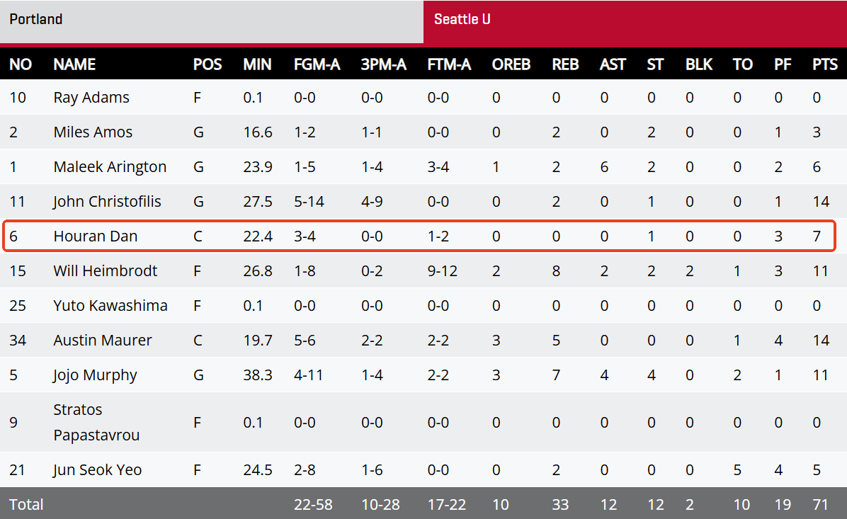 NCAA常规赛:淡厚然4中3贡献7分,西雅图大学战胜波特兰大学