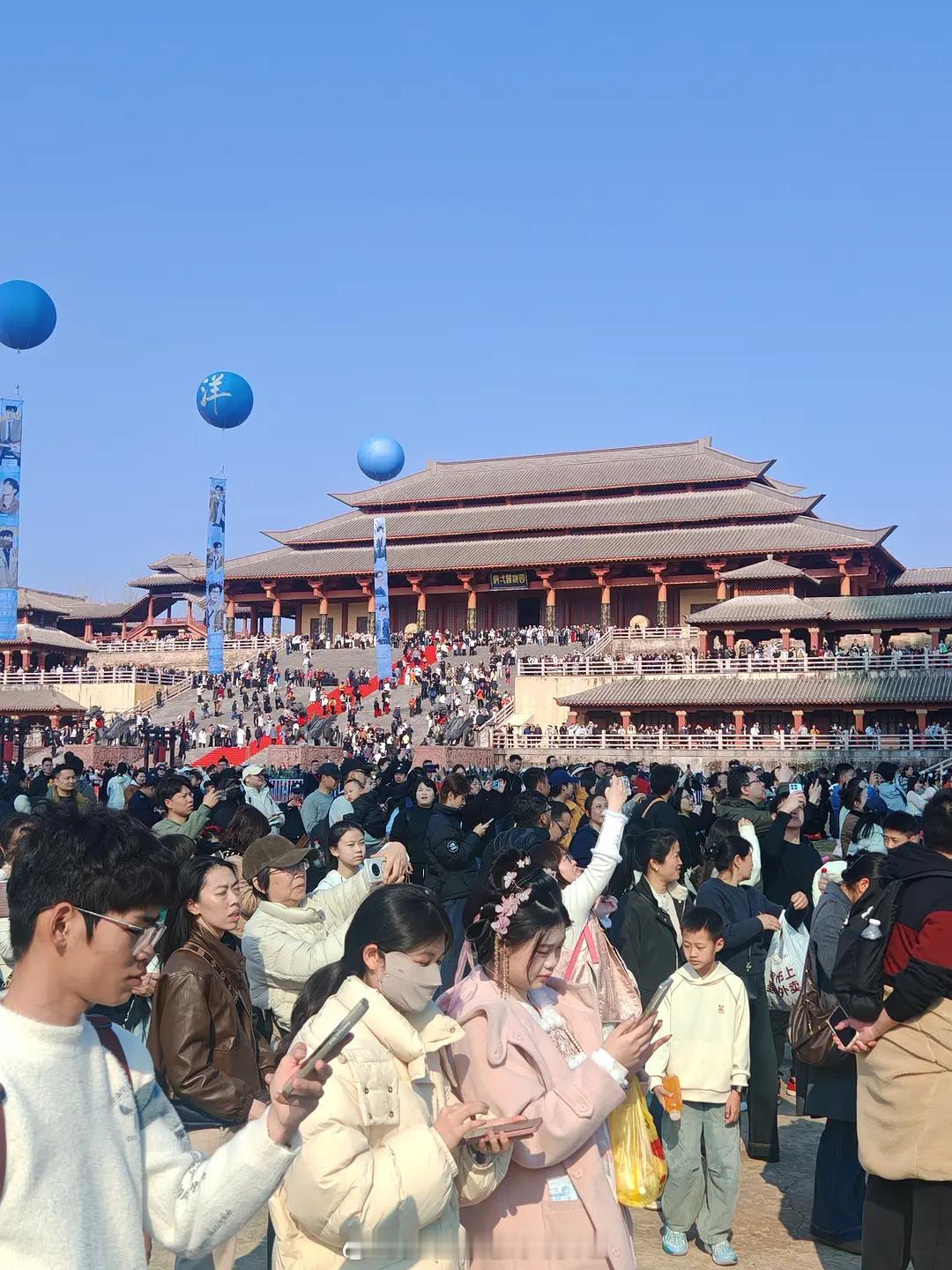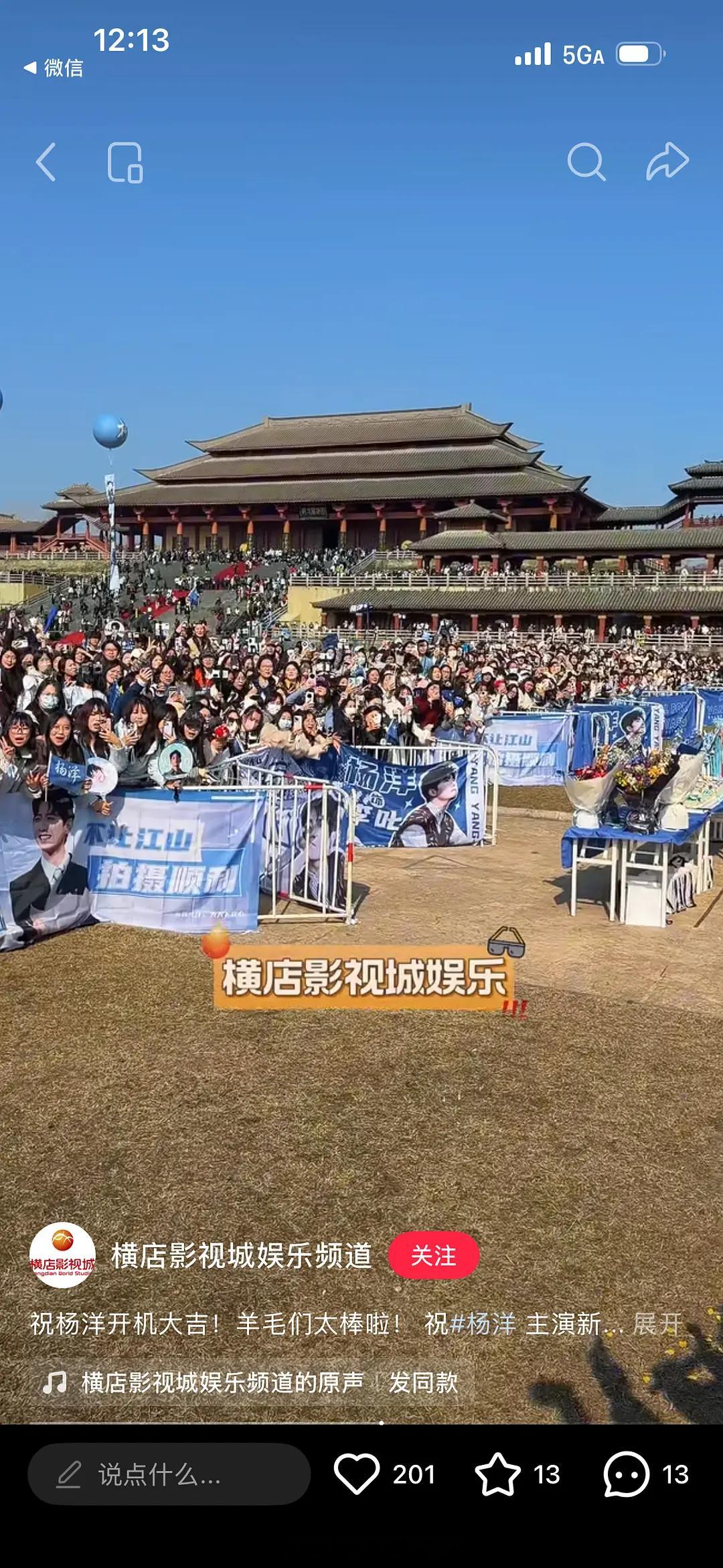 杨洋不让江山 开机现场应援人数,9点开机游客还没进内场,所以应该都是粉丝这人气在