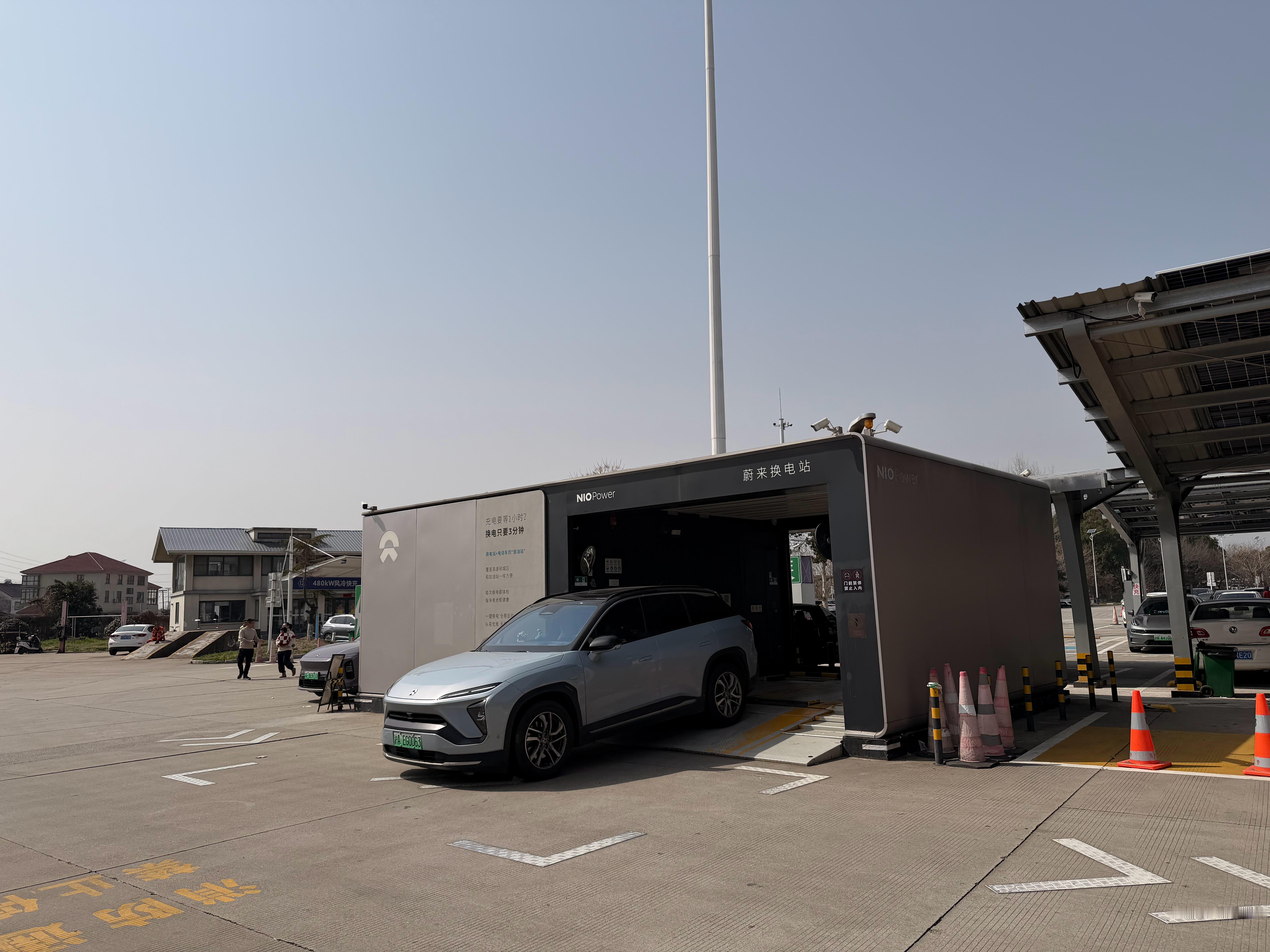 初六一早沿着G50沪渝高速返沪,3小时38分钟只开了231公里,明天无论如何都会更堵。平望高速换电站旁边,蔚来还有补给服务以及相关服务说明,旁边的480kw快充桩也没有多少排队的人。