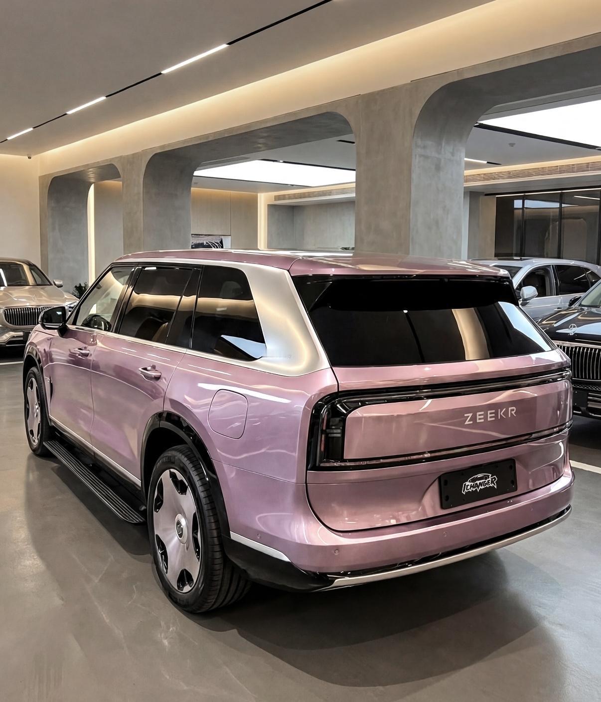 要不说高手在民间,被一台水光粉配色的极氪9X硬控了!原本很硬朗的设计,配上水光粉,瞬间柔和了不少,适合小姐姐开哦。