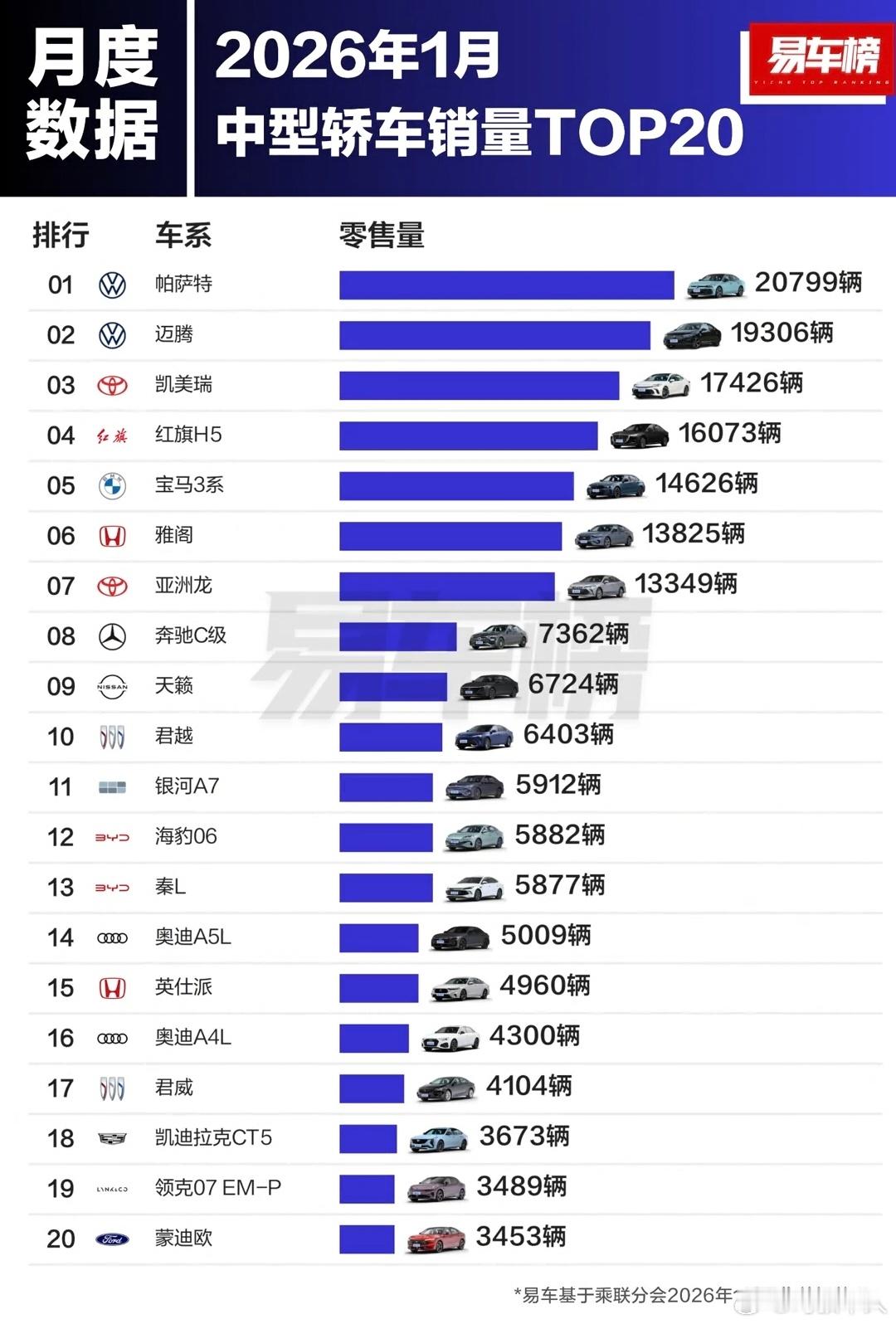 挺有意思的!1月的轿车销量排行一眼看上去全是燃油车,本来油车的市场份额一直在缩水