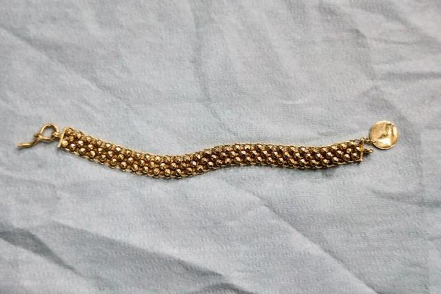严芝科伸手进中转箱掏金手链。