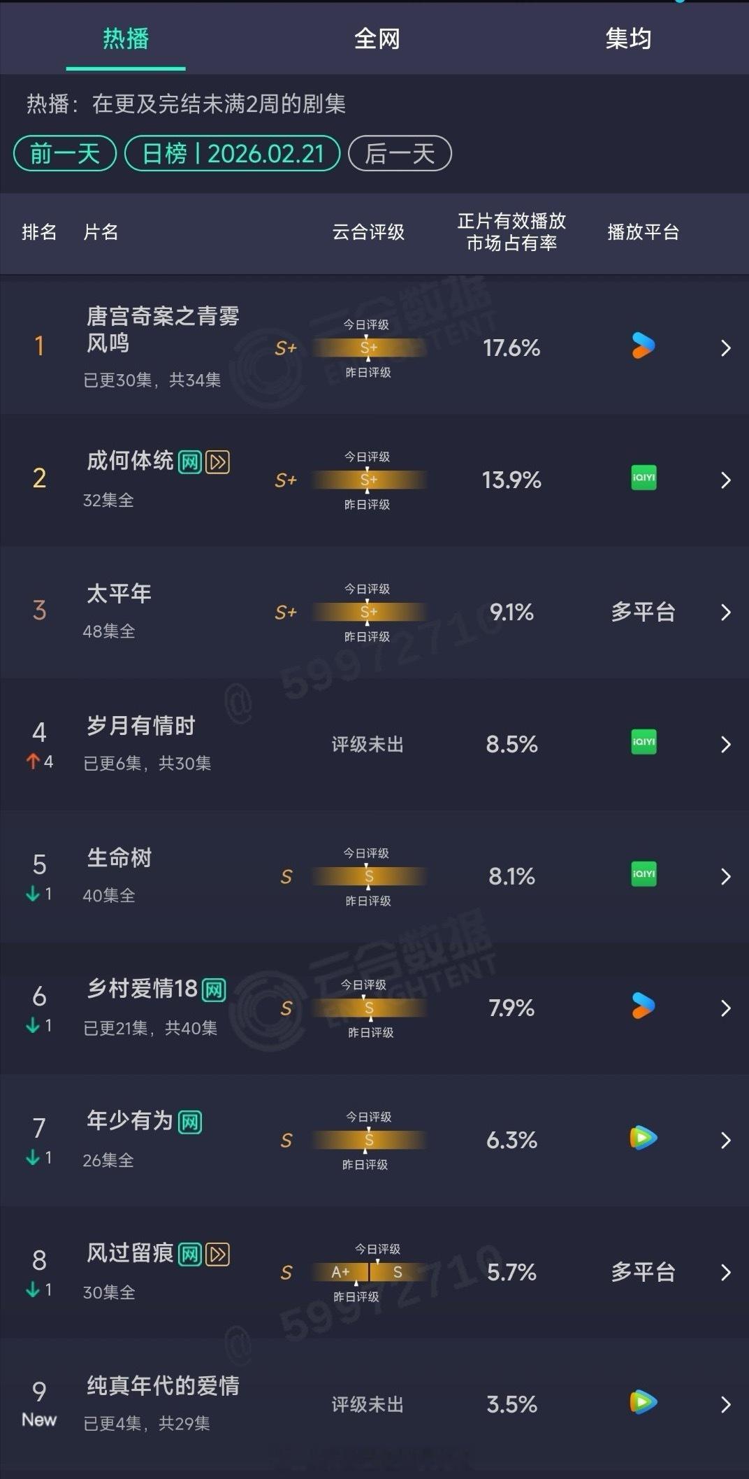 2.21云合:陈飞宇、孙千的纯真年代的爱情首日预估503万,开局2广主要是讨论量不高,逛了圈郫县和微博,提的人也不多,看看后劲吧,红黑俱灭的也不是好事