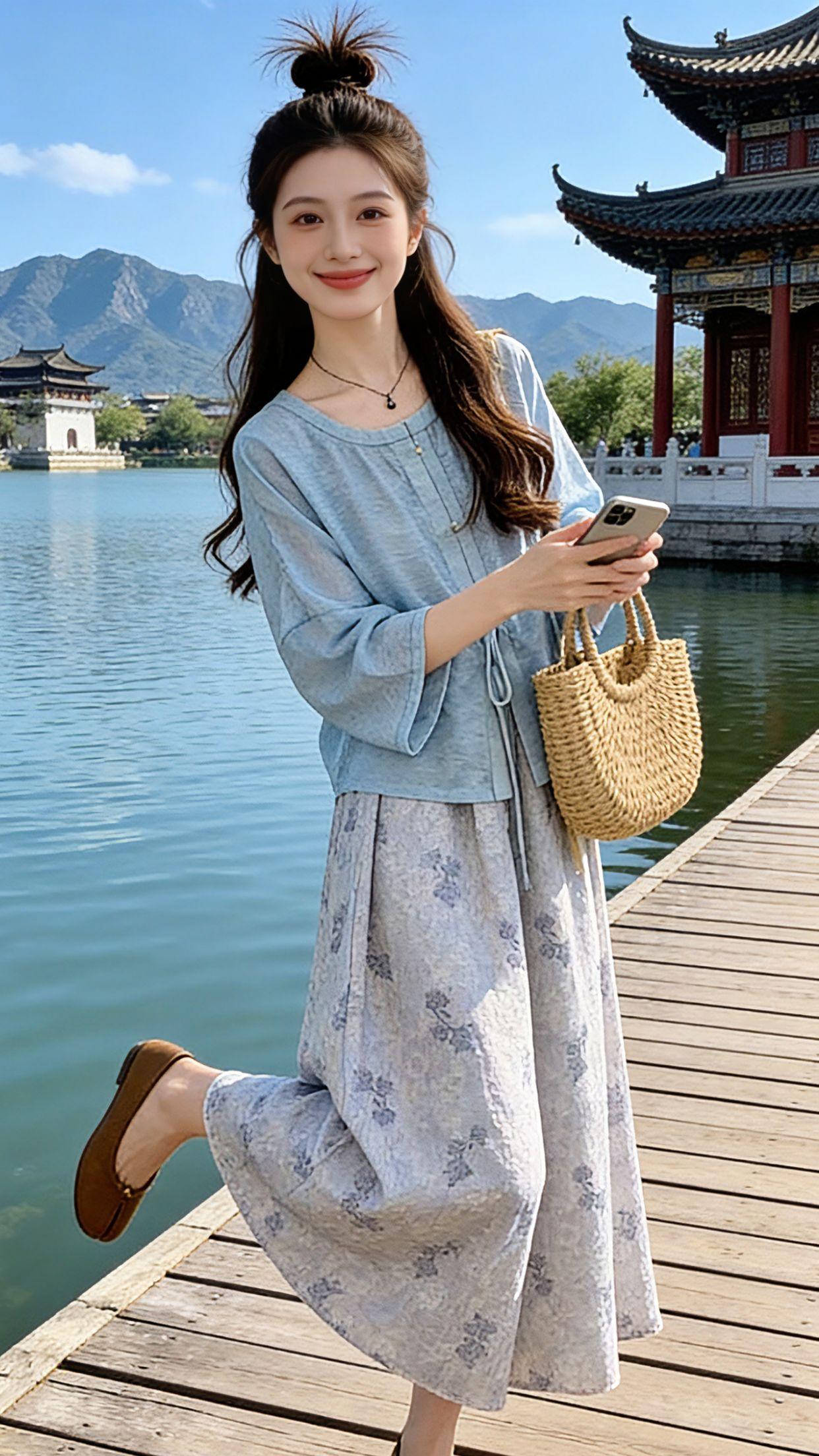 夏天的松弛感,被这套清润蓝调新中式套装承包了。自带江南温柔氛围感,宽松版型不挑身材,上身藏肉又透气,完全没有紧绷束缚感。 雨天探店、湖边漫步、海边度假都适配,不用费心搭配,踩双单鞋就很有味道,把中式雅致和日常松弛感拿捏得刚刚好。 新中式穿搭 气质套装 美女穿搭真的很曼妙 记录我的一半一半 谁穿谁好看 @抖加🔥上热门🔥dou+🔥热点宝 @DOU+小助手 @图文带货帮扶中心