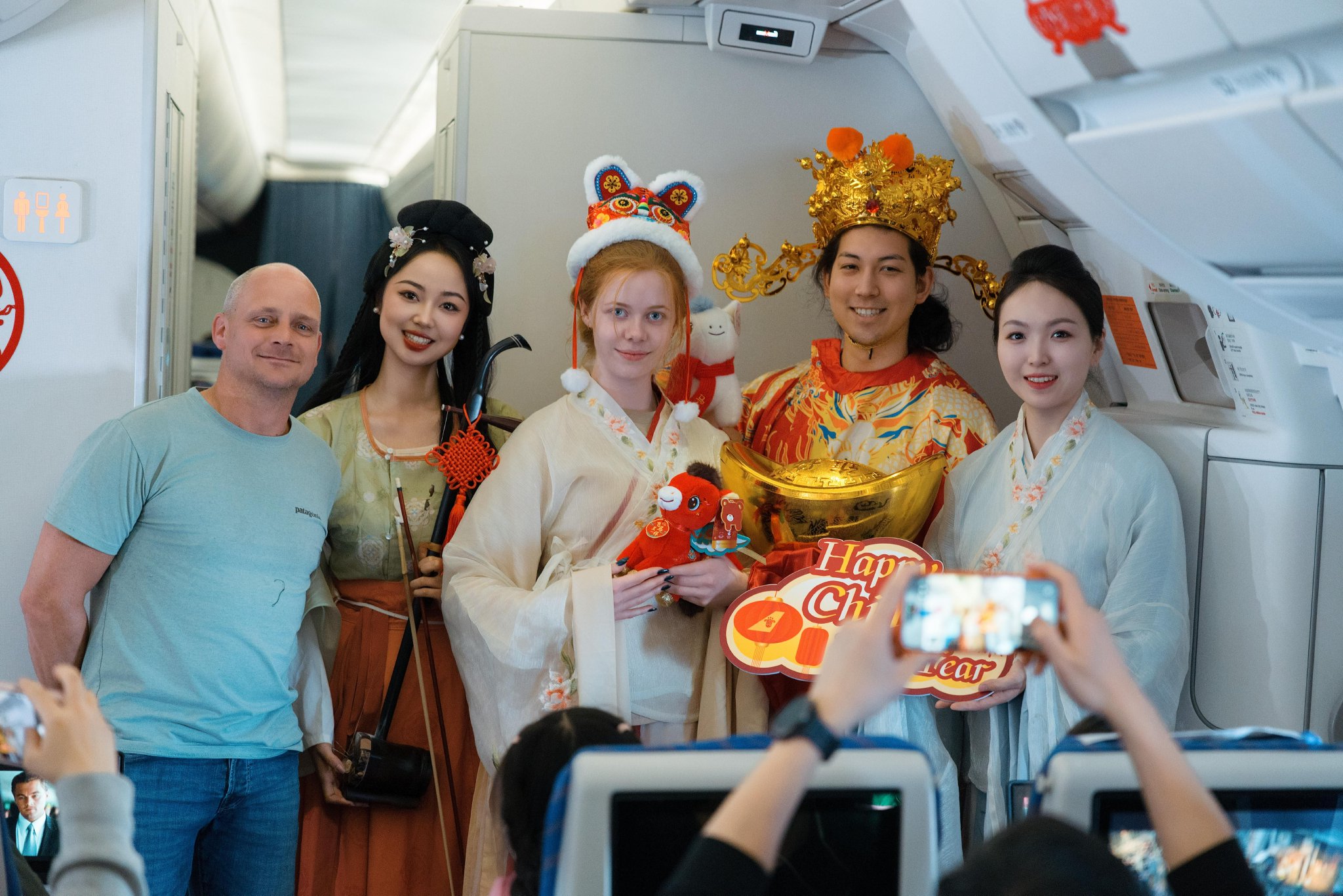 “在飞机上穿上汉服、感受中国传统音乐与年味,无比震撼,这是我最特别的新春之旅!”在南航广州飞往阿姆斯特丹的航班上,外籍旅客由衷赞叹着。