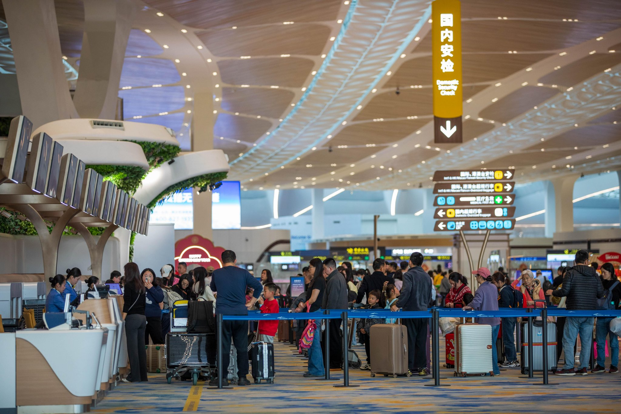 今年春运,白云机场客流持续高位运行,节前2月5日至15日连续11天旅客量超26万人次,其中2月11至13日连续三天突破27万人次;节后返程高峰再攀新高,2月20日27.55万人次、21日27.76万人次接连刷新春运单日客流量纪录。