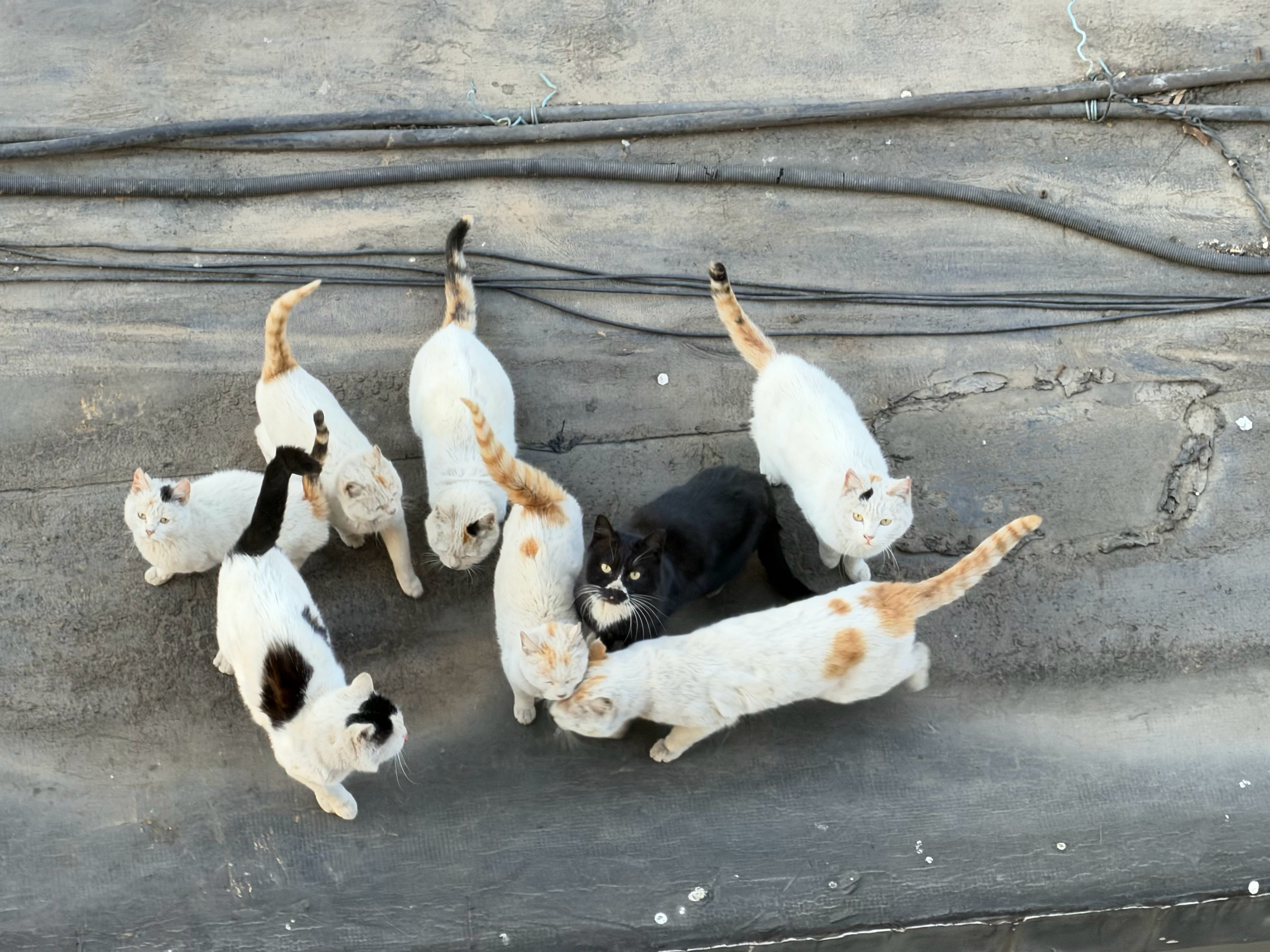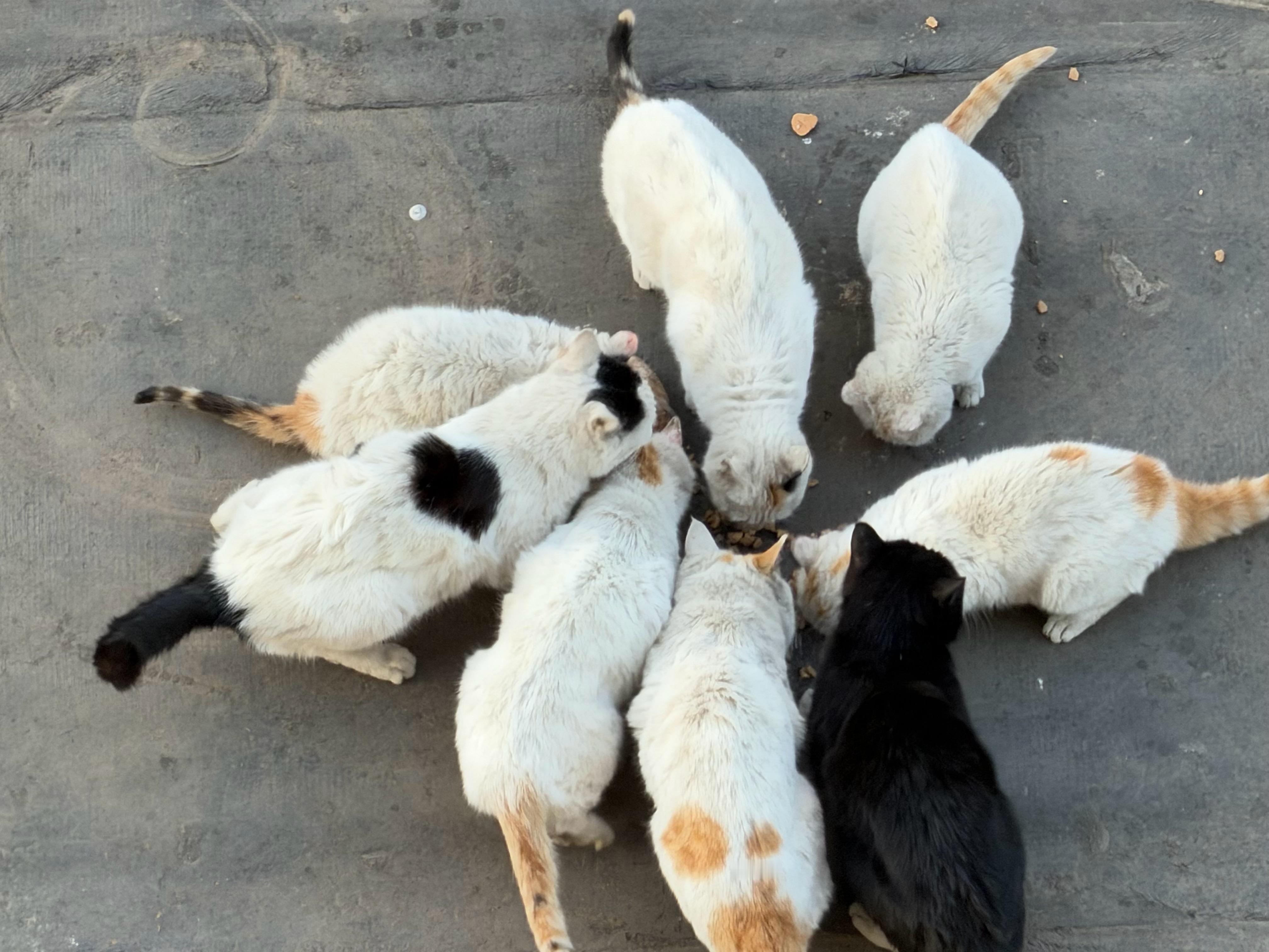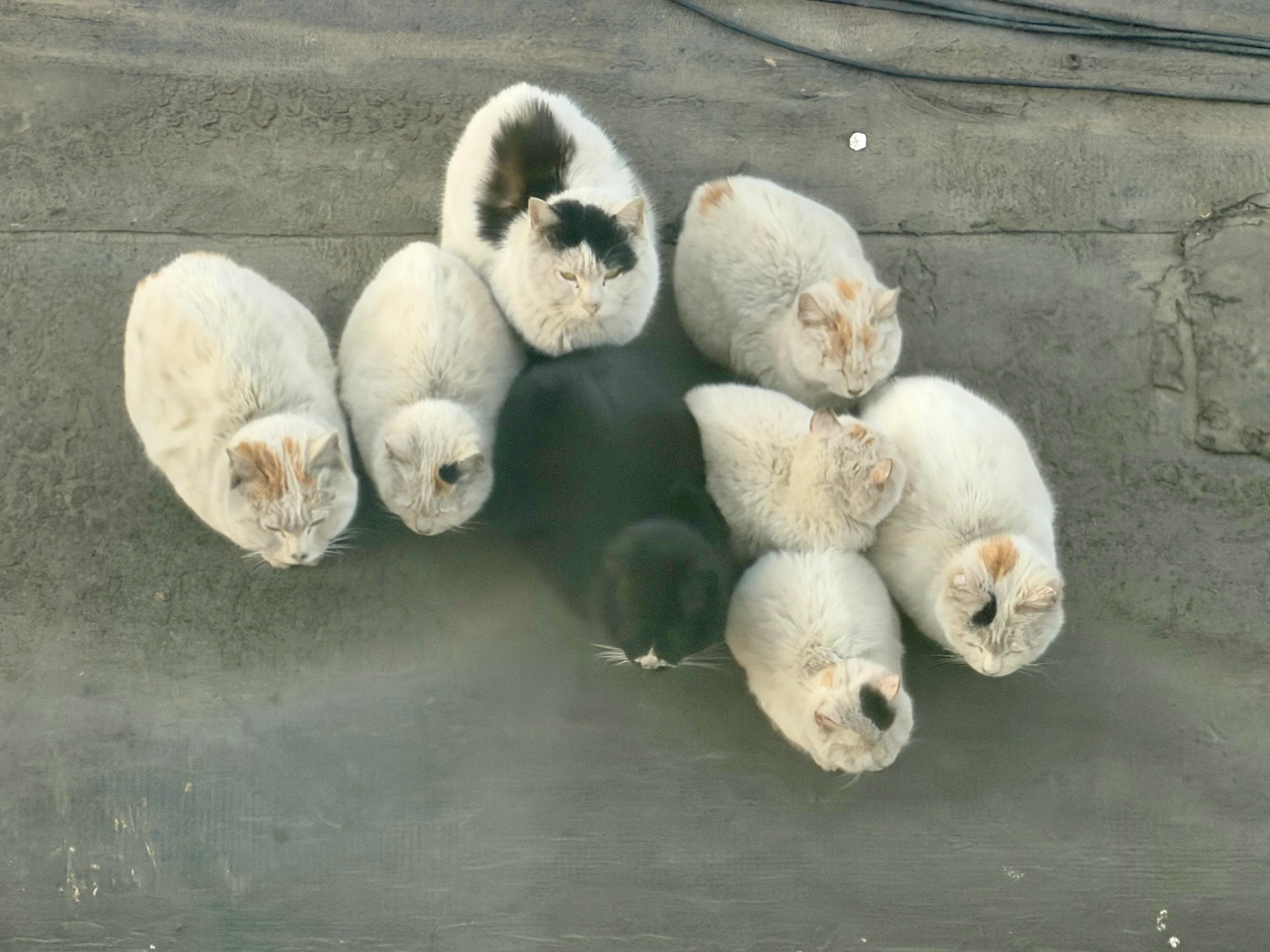 楼下平台住着一家八口,一只最小的没熬过这个冬天每晚睡前把猫粮泡软,第二天一早投喂用喂了快一年,这一家已经养成习惯每天固定位置侯餐过年头几天去深圳,估计每天也按时来但没等到吃的每天只早上出门前喂一次,固定搭配(图3)还没吃腻
