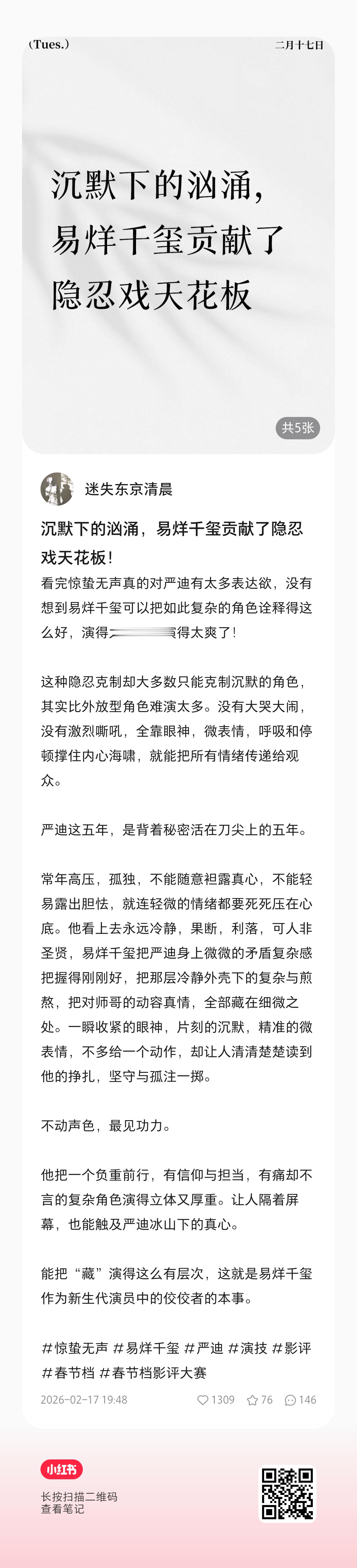 🍠来不要只点👍🏻,去评论里热聊!!!易烊千玺电影惊蛰无声易烊千玺严迪
