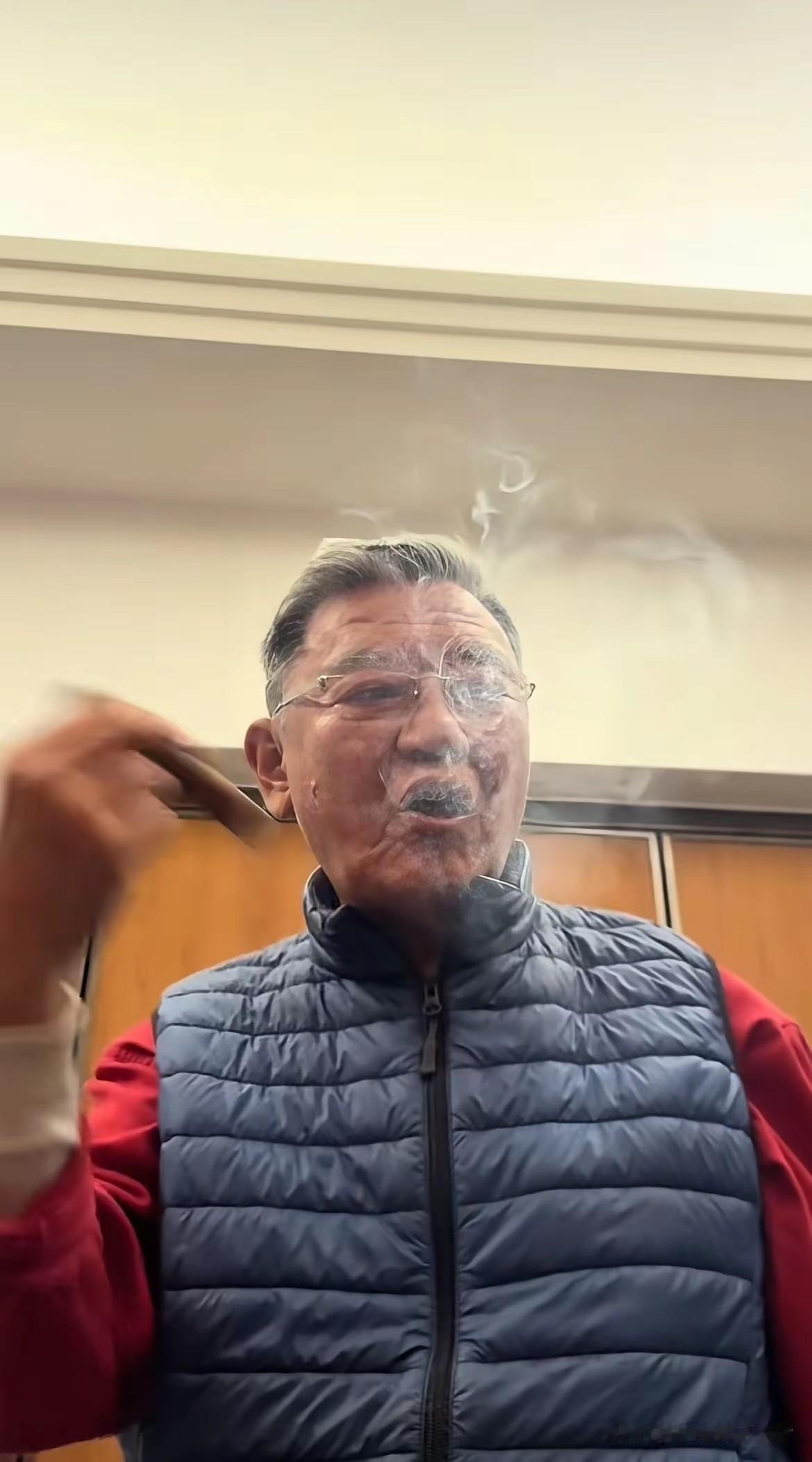 李立群真是牛,拍短视频竟然抽雪茄,老头就是乐观,一个人拍戏养全家,儿女都是有自己的信仰不结婚。 李立群每天嘻嘻哈哈,但是家里其他人不管高兴不高兴都是拉着脸子。