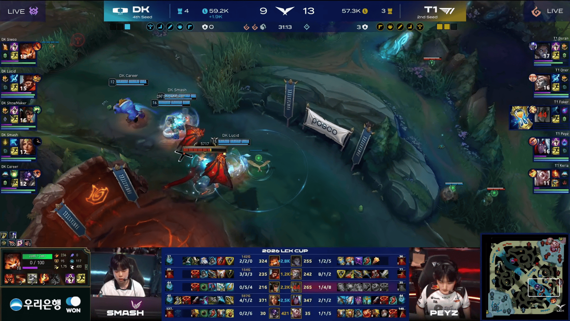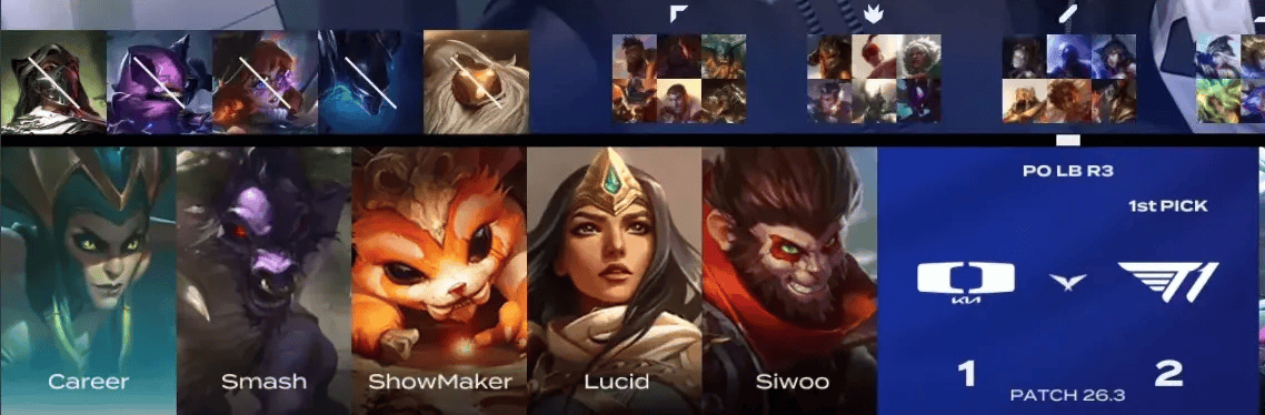 DK选用:Siwoo纳尔、Lucid猴子、ShowMaker蛇女、Smash希维尔、Career牛头