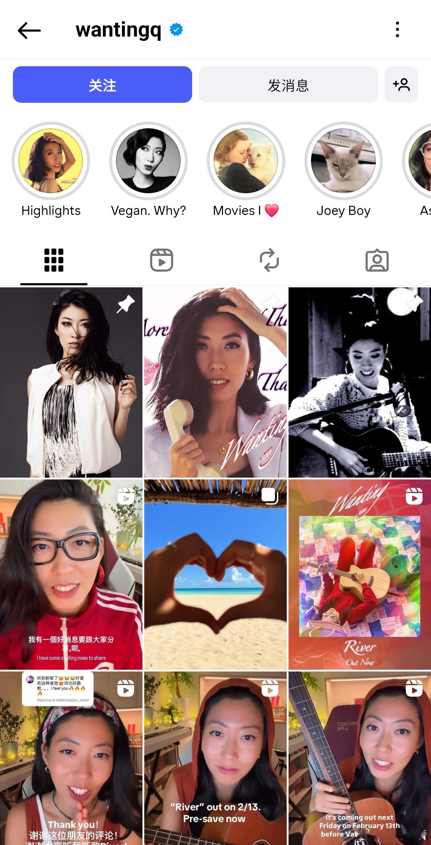 曲婉婷开通账号她这是准备宣传新歌了(图1)曲在ins上一直很活跃(图2)也公布了