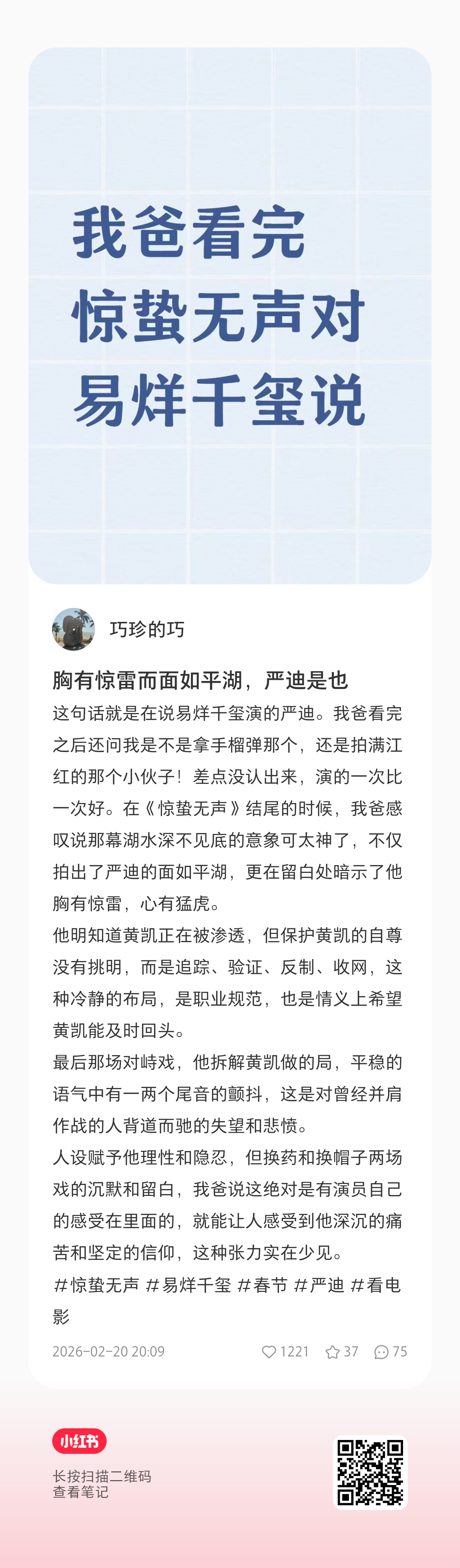 晚间再来一轮,大家多评论易烊千玺电影惊蛰无声易烊千玺严迪
