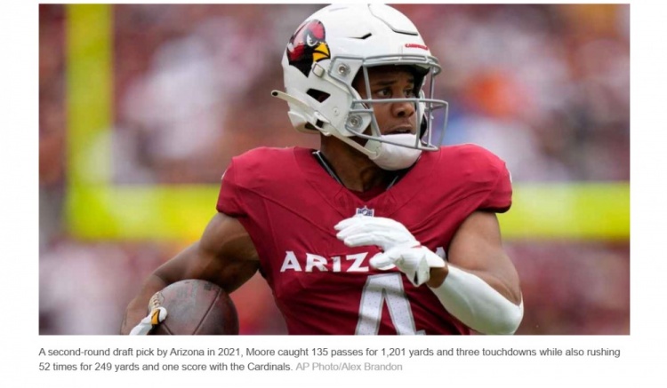 摩尔是2021年NFL选秀亚利桑那红雀队选中的二轮秀,过去两个赛季因伤长期缺阵。2024赛季效力亚特兰大猎鹰队期间,他因右膝脱臼缺席了整个赛季。