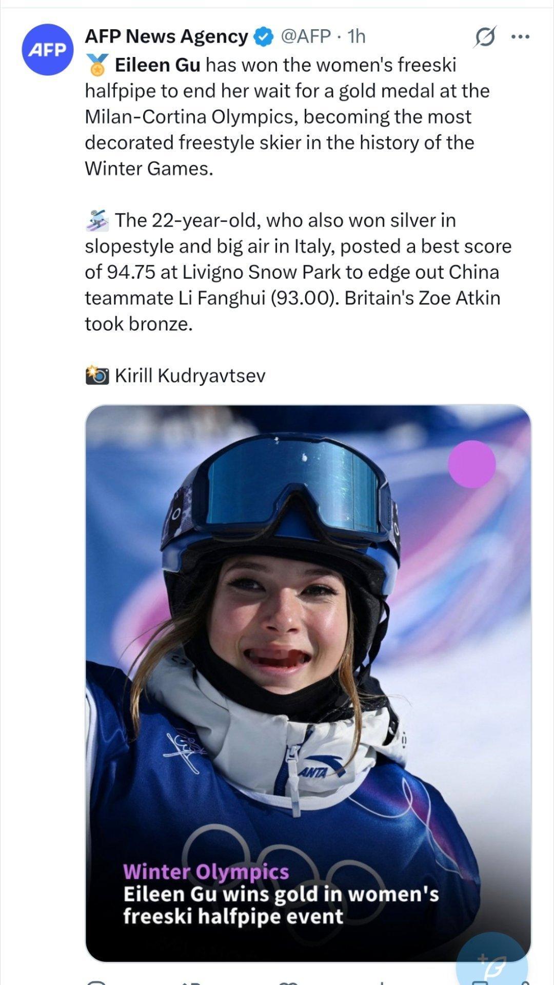 央视女解说看谷爱凌夺冠哽咽了¹ 突然刷到谷爱凌得金牌🥇,跑步过来为她喝彩!² 她超级年轻,但好像已经是赢得冬奥会自由式滑雪奖牌最多的运动员!她参加的项目上都获得了奖牌!热点科普