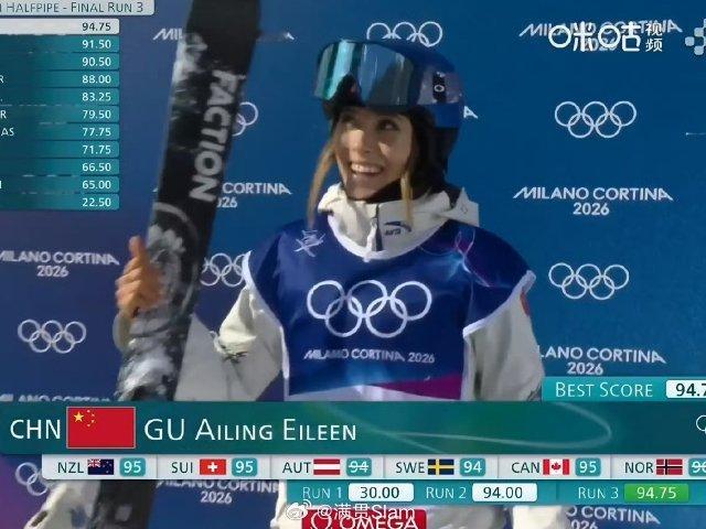 谷爱凌第三滑94.75分谷爱凌飞起来了 米兰冬奥会自由式滑雪女子U型场地决赛,谷