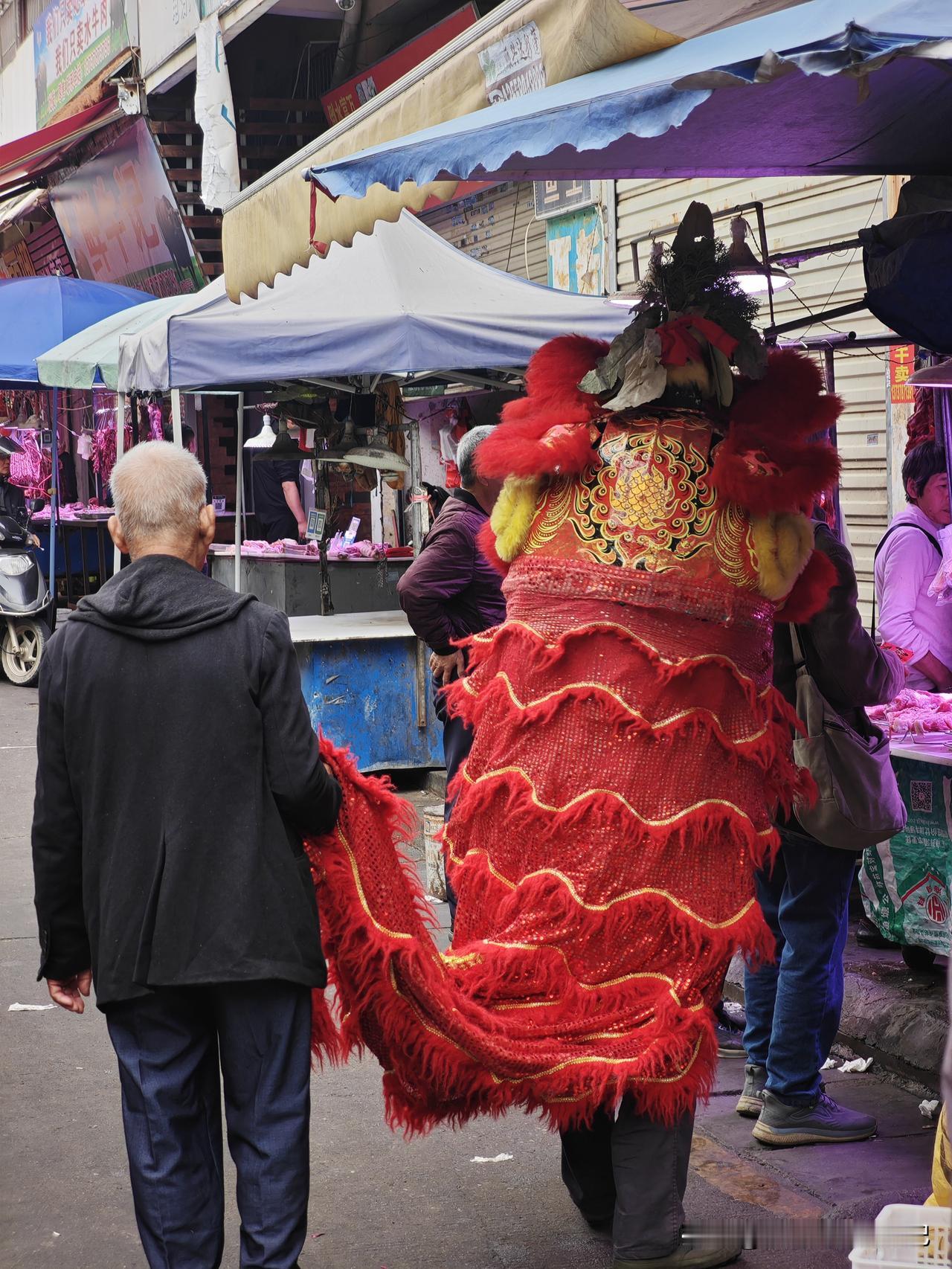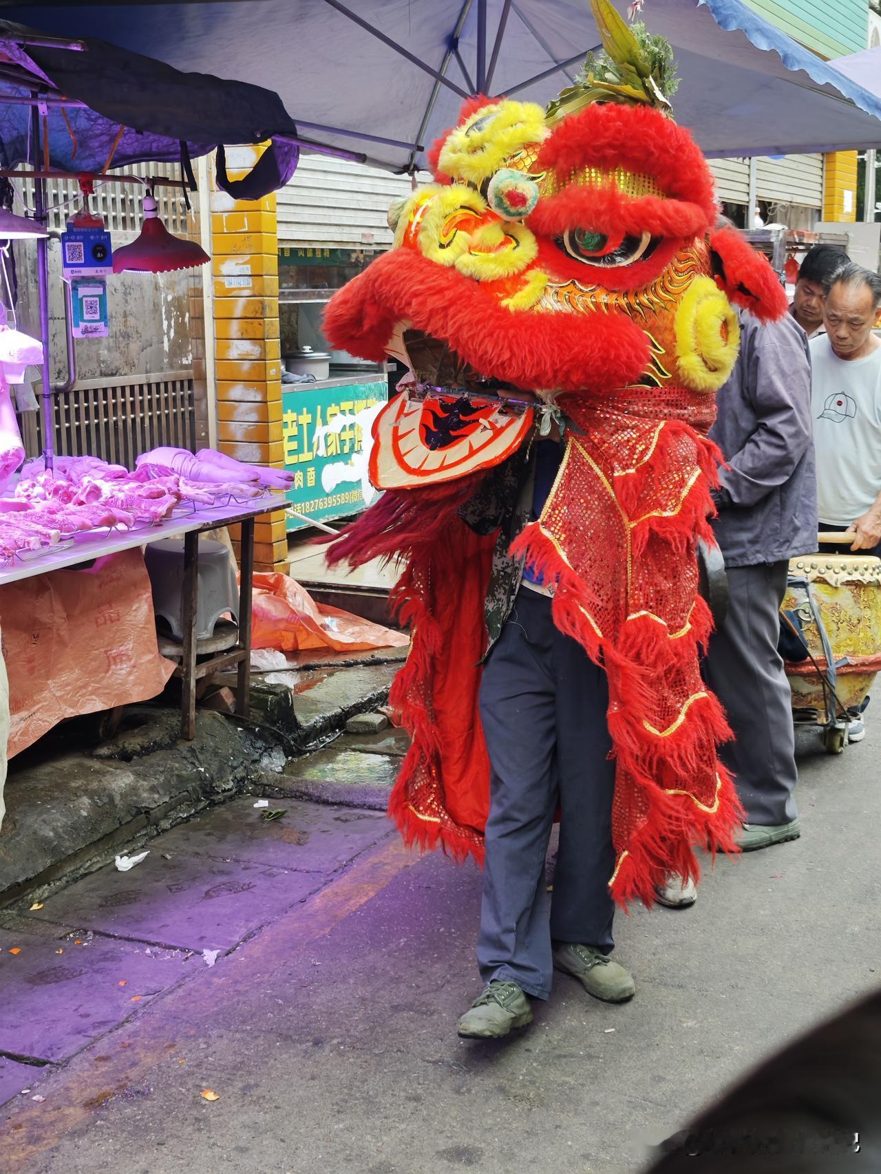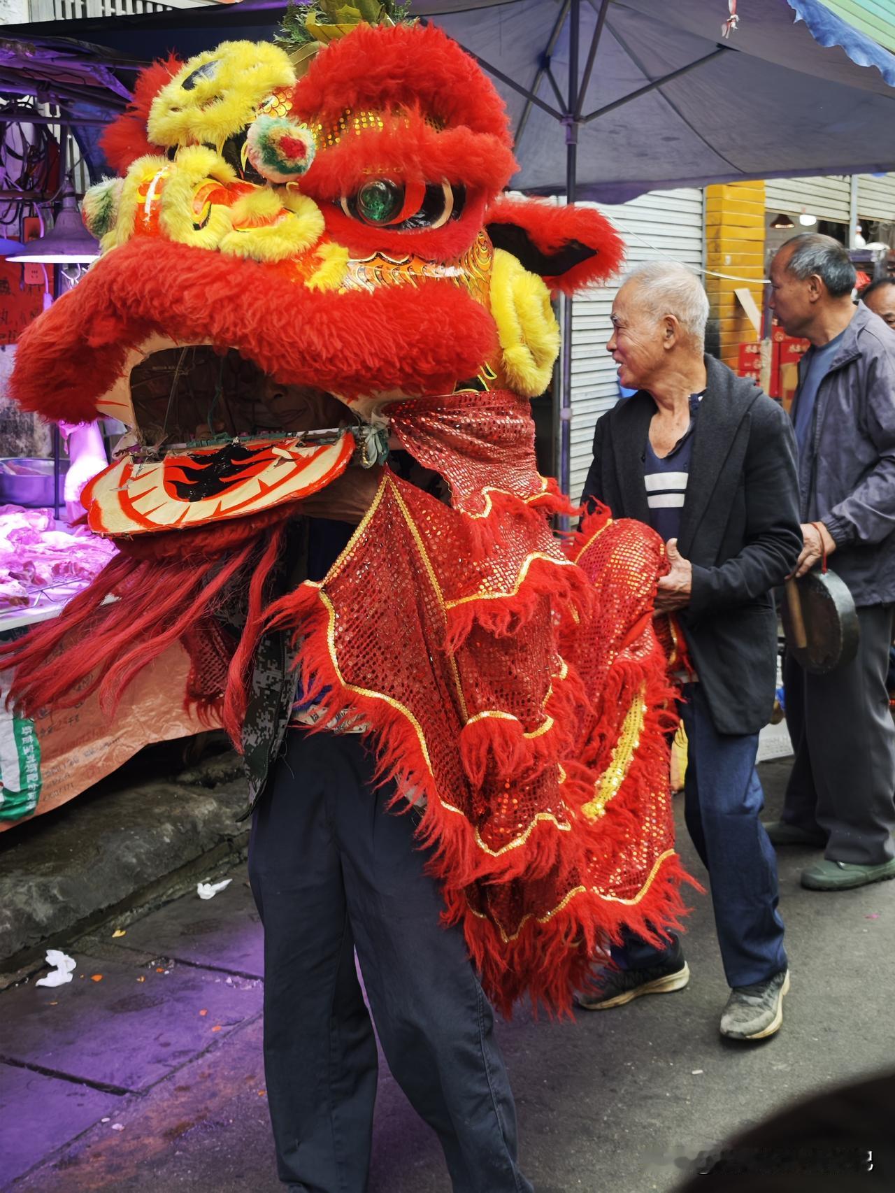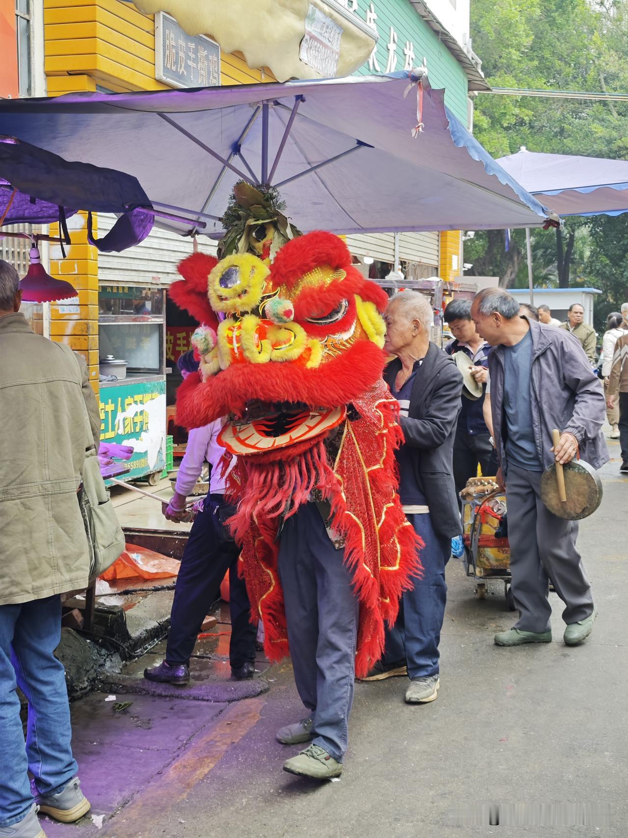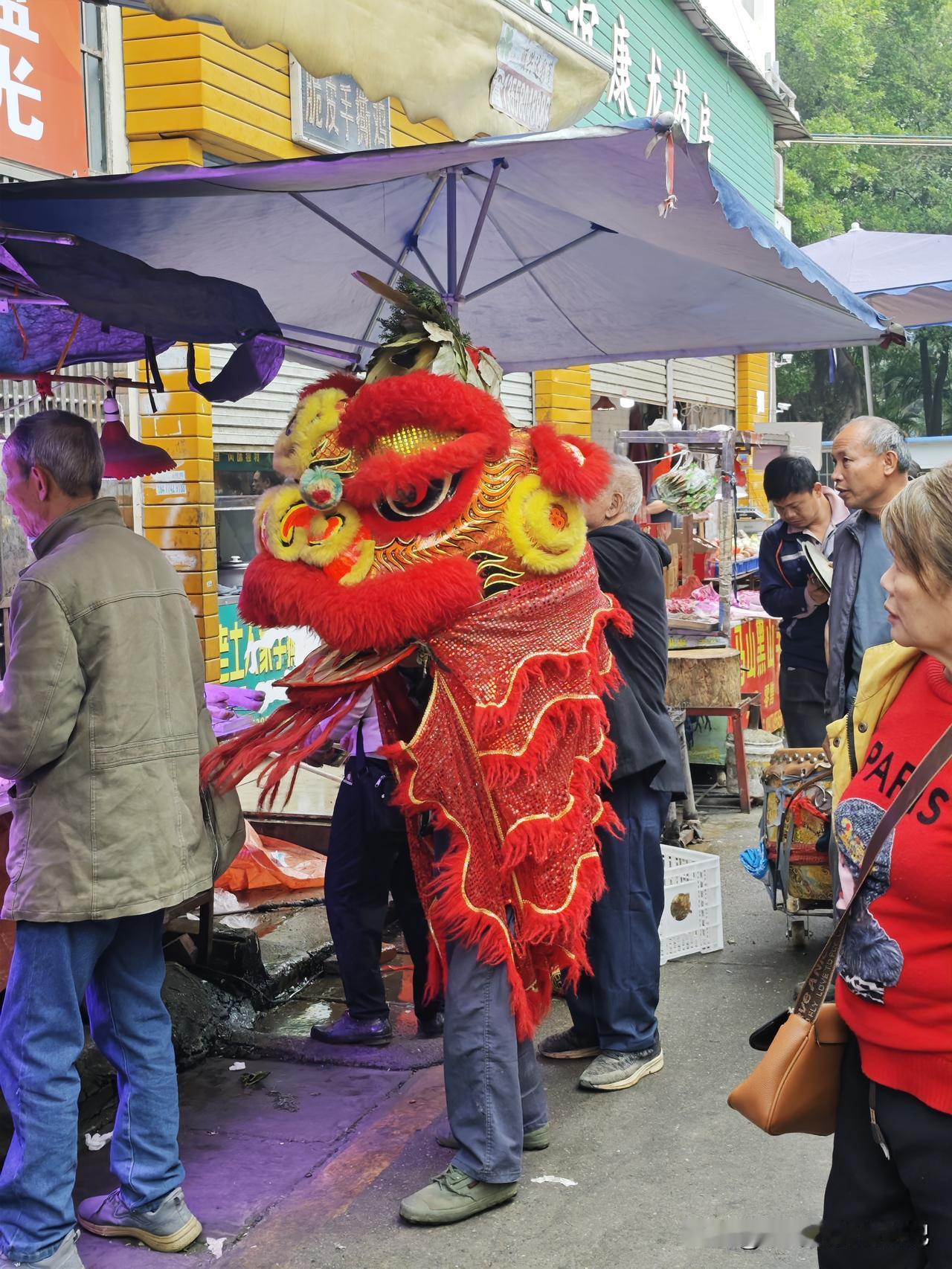 天南地北大拜年蛮热闹哦,在梧州下高速吃个午饭,看到餐厅旁的市场,有几个老人在进行狮子拜年祈福......
