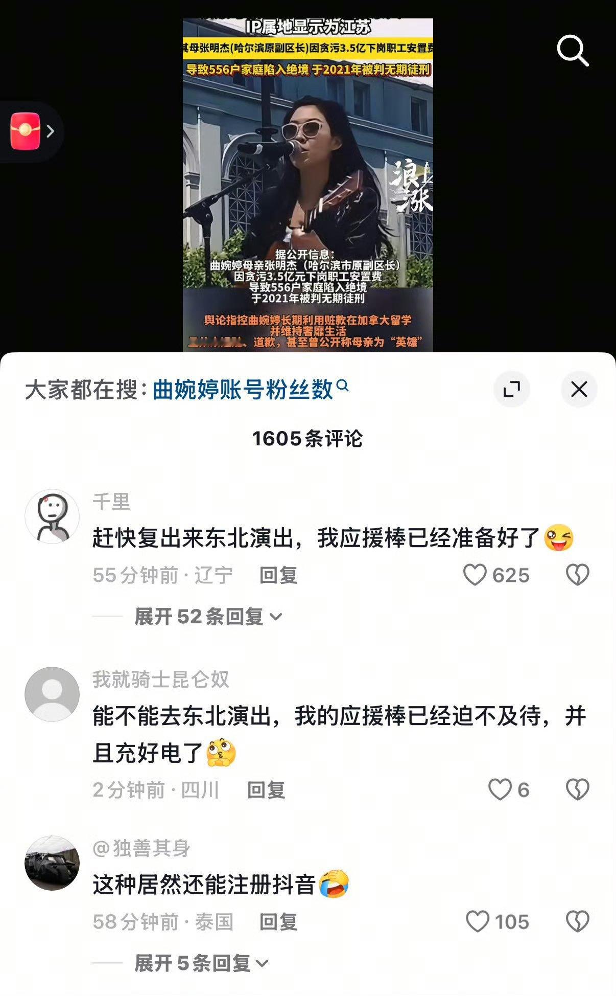曲婉婷帐号没了曲婉婷开抖音不到一天头像就没了她花的全是东北下岗工人的安置费取暖费海外十几年不退赃不道歉还想回国赚流量!!!