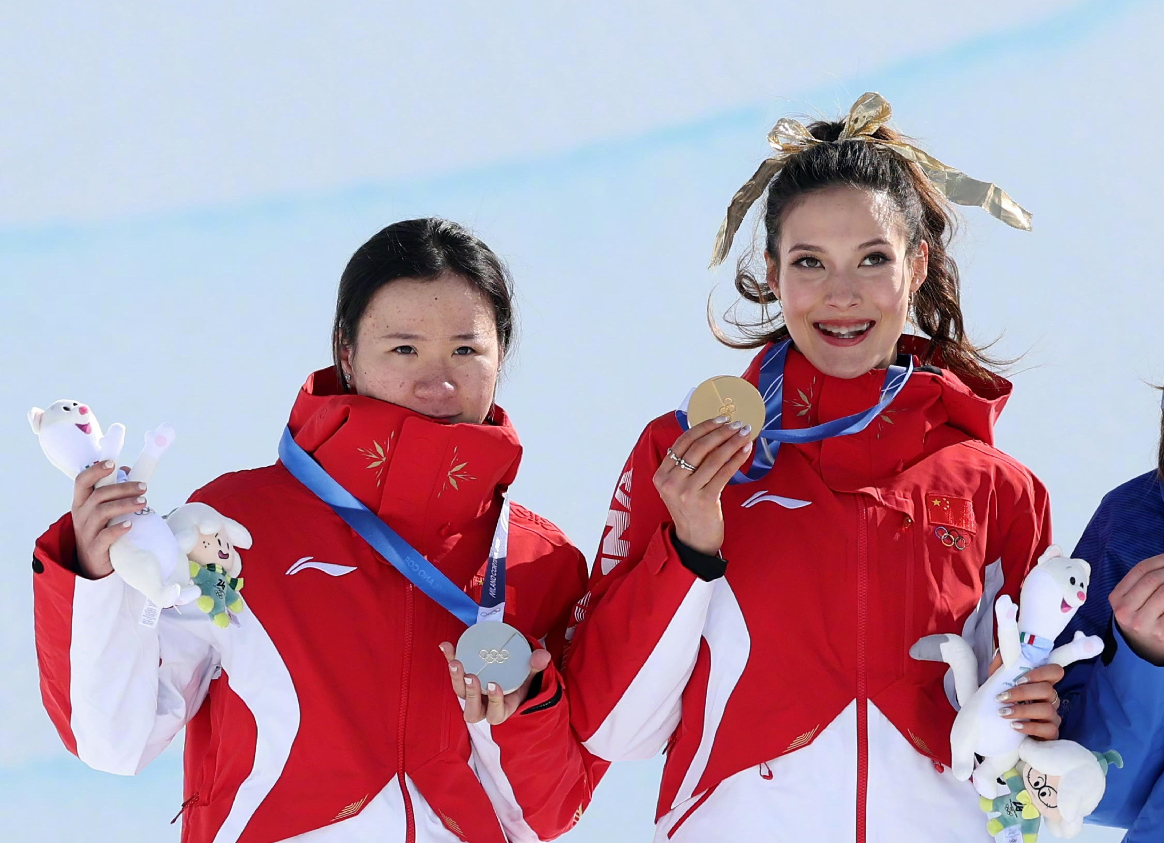 慧当凌绝顶谷爱凌李方慧包揽金银牌 自由式滑雪U型场地技巧决赛中,谷爱凌第三轮取得94.75分,李方慧第三轮取得93分,两人包揽冠亚军!慧当凌绝顶,两人的名字注定要一起登上最高领奖台!当李方慧成功落地后,谷爱凌冲上前送上拥抱和祝福!恭喜谷爱凌,故意李方慧,恭喜中国冬奥代表团!