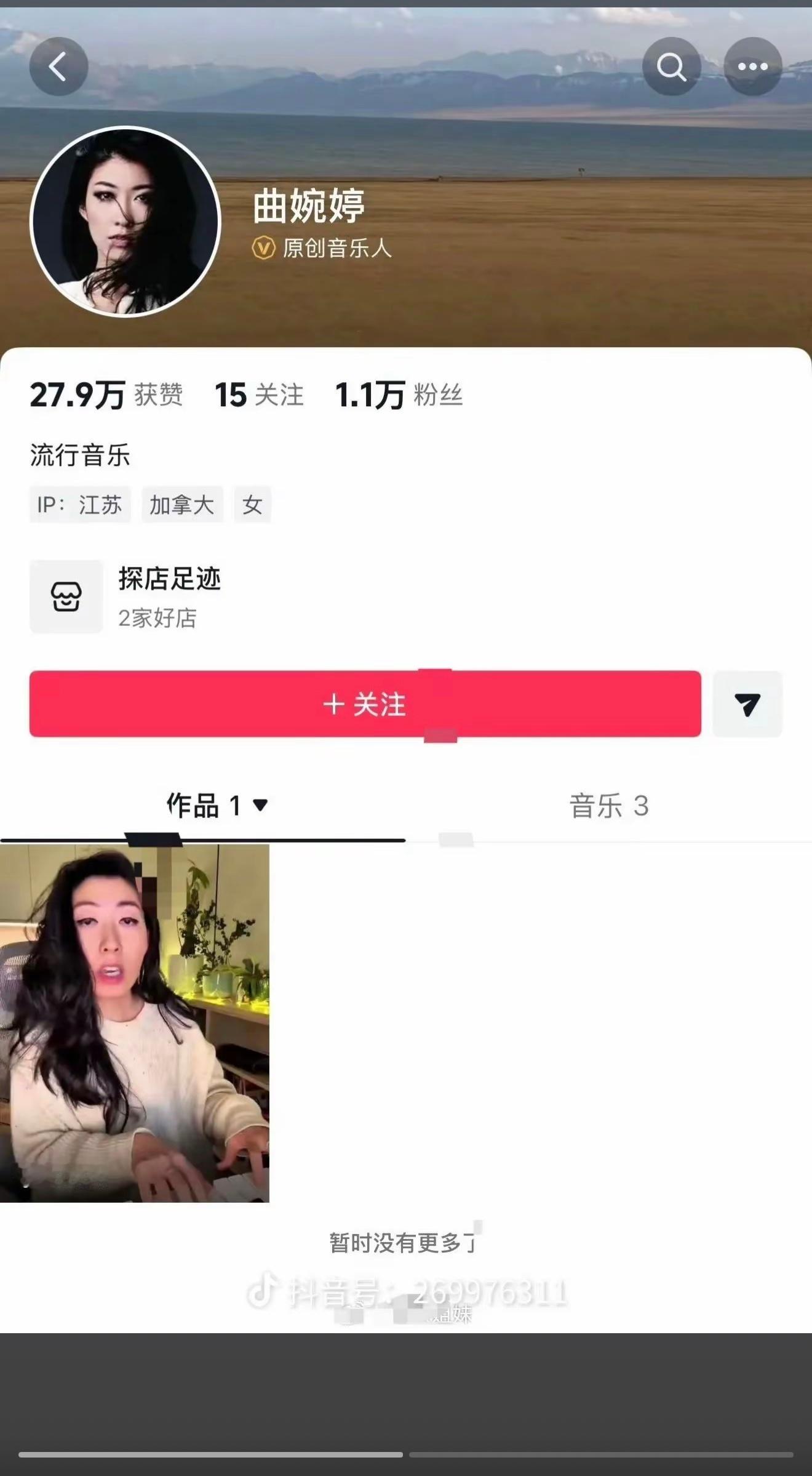 笑死,曲婉婷开了抖音认证的账号,还没来得及去骂已经无了