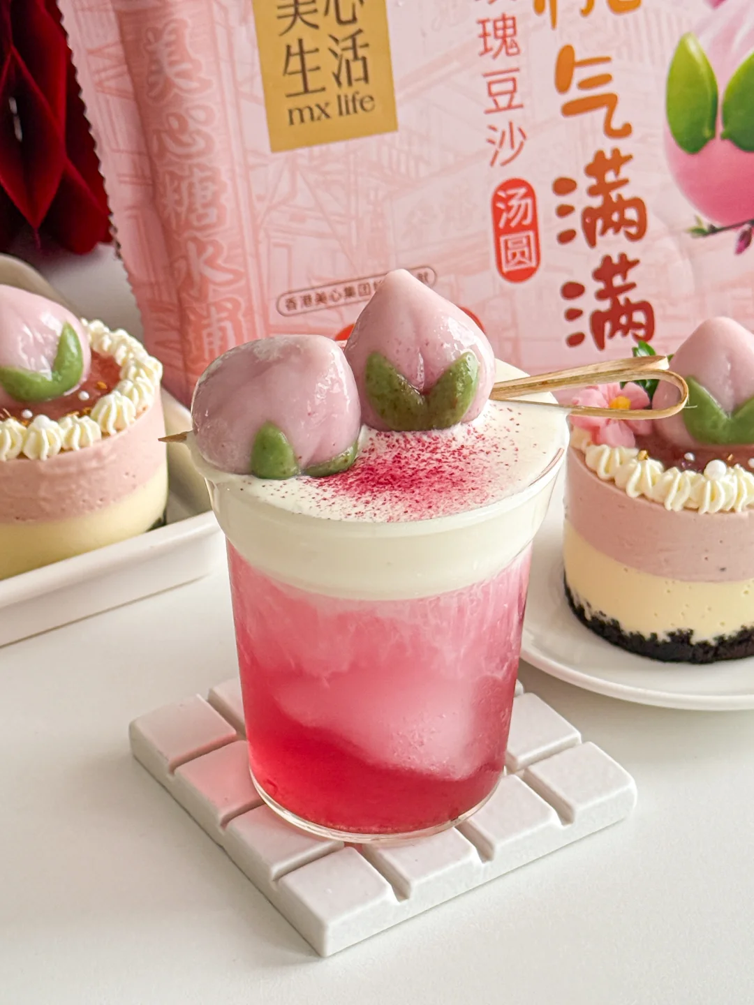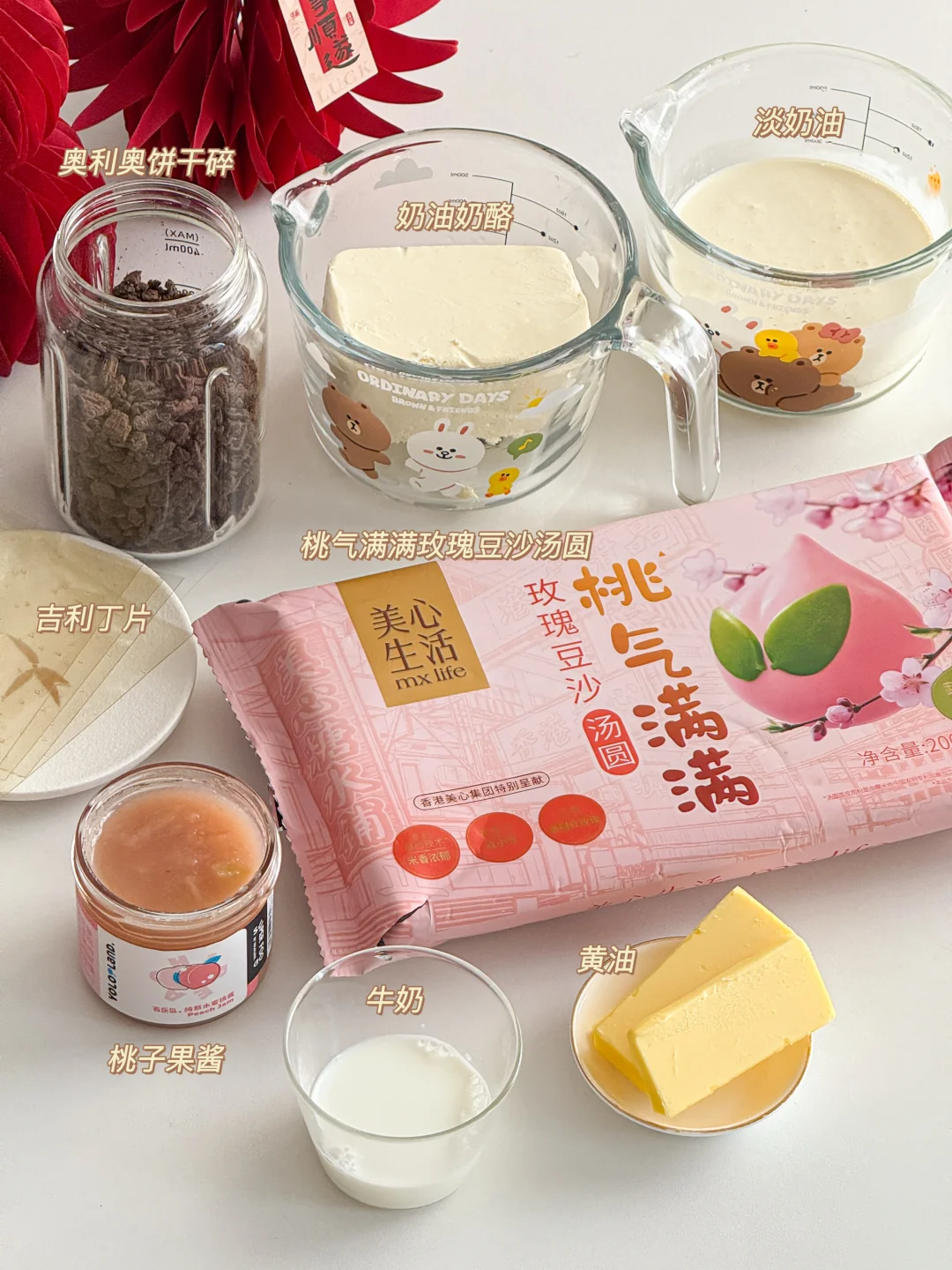 奶油|美心生活桃气满满玫瑰豆沙汤圆|桃子果酱|樱花巧克力