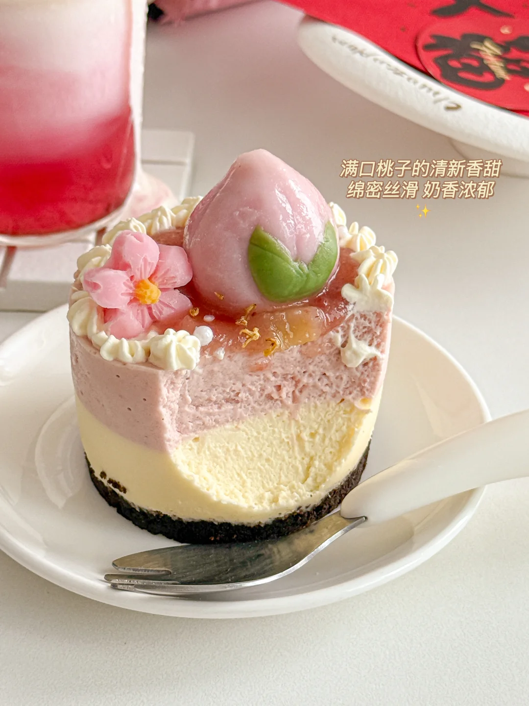 藏着整颗“好运桃桃”的温柔慕斯,趁着过年,多备一些给家人尝尝~