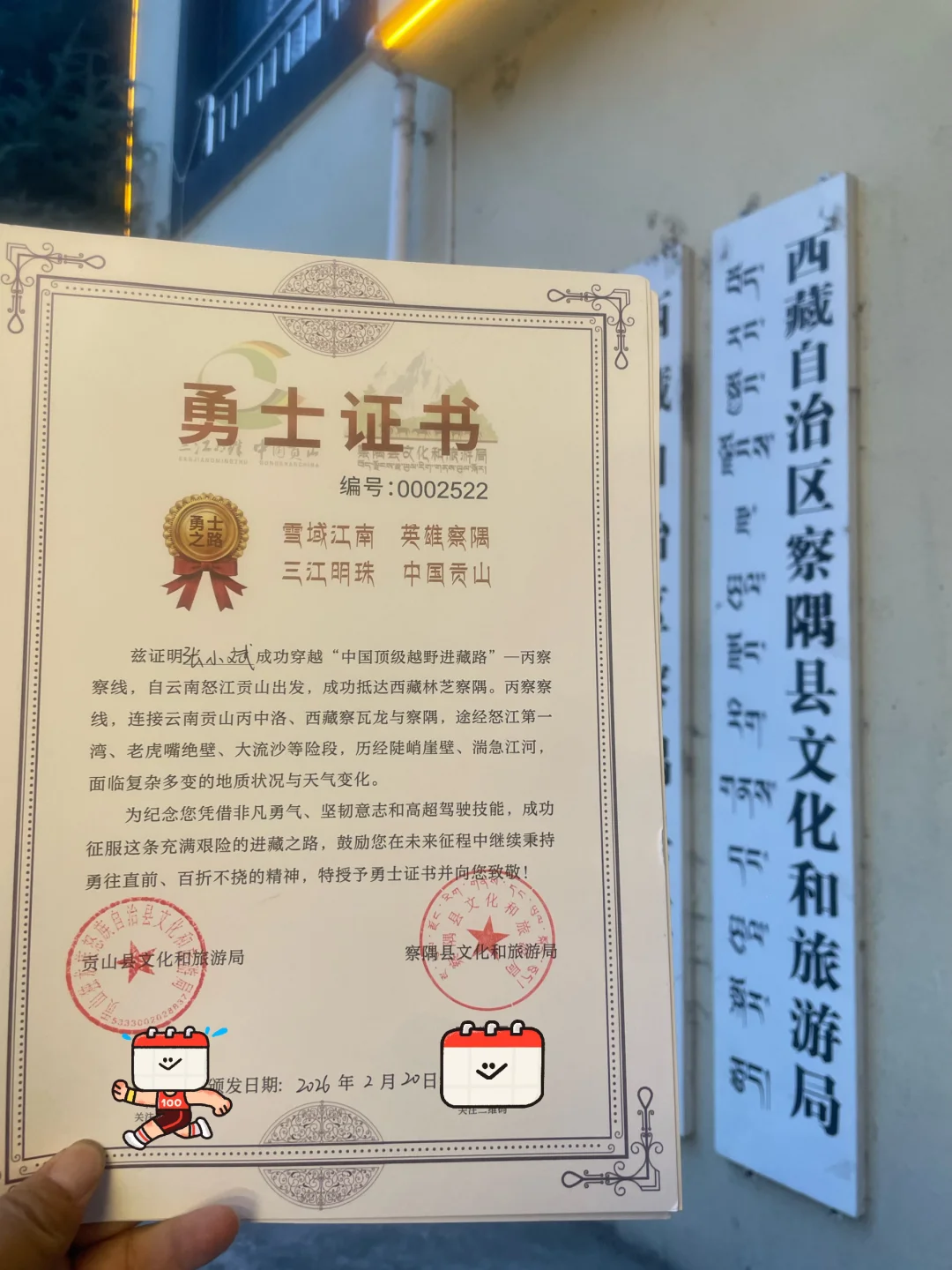 一家人🧑‍🧑‍🧒‍🧒带着三岁帅哥🤵 一天干穿丙察察✅ 丙中洛休整→219国道→察瓦龙→察隅县→丙察察主线 真实路况大实话:只有到察瓦龙那一小段是柏油 过了察瓦龙,全是搓衣板+碎石+炮弹坑 颠到怀疑人生,但眼睛在天堂😭 真的比318更野更绝 怒江峡谷、大流沙、雪山垭口、益秀拉垭口 人少、景野、没商业化(2月20日路上没车没人) 每一张都是壁纸级原图 ⚠️真实提醒 • 硬派越野/高底盘SUV更稳,轿车慎行 • 一天能走完但别赶夜路,弯多落石多 • 油、水、干粮备足,补给少信号弱 • 大流沙已修新桥,相对安全但仍要快过 丙察察的野性,开过才懂 已拿下越野圈硬核勋章🏆 有问题随便问,知无不言!
